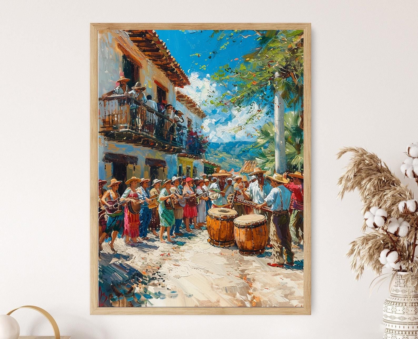 Affiche Marimba Nicaraguéenne – Impression Artistique Vibrante de Performance