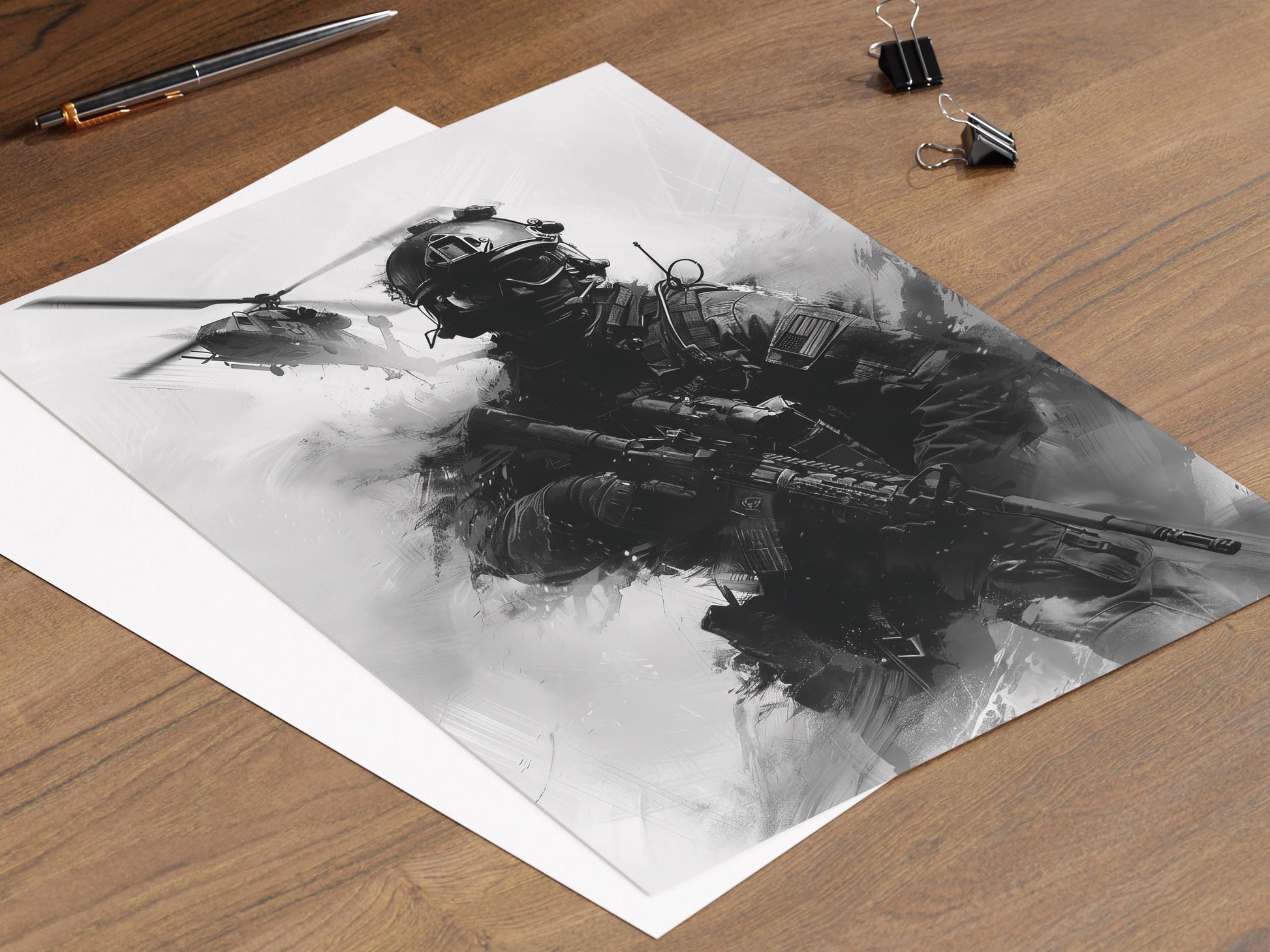 Découvrez notre affiche dédiée aux Navy Seals, une illustration captivante qui célèbre le courage et la force. Avec son style audacieux et ses détails minutieux, cette décoration murale incarne l'esprit de bravoure et d'héroïsme, apportant une touche d'émotion et de dynamisme à votre art mural. Transformez votre espace avec ce poster mural qui inspirera et impressionnera à chaque regard.