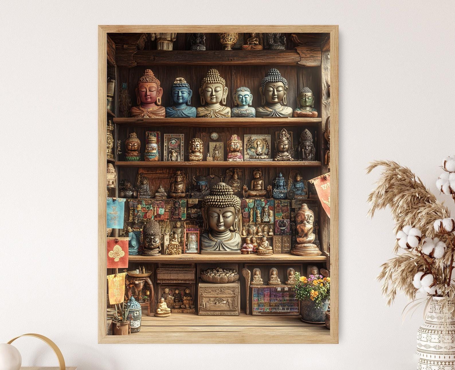 Découvrez cette affiche captivante qui plonge dans l'univers enchanteur d'une boutique tibétaine, ornée de masques cérémoniels, de statues de Bouddha en bronze et de drapeaux de prière colorés. Cette illustration vibrante évoque une ambiance spirituelle et artistique, idéale pour enrichir votre décoration murale et apporter une touche d’exotisme à votre art mural. Transformez votre espace avec cette pièce unique qui célèbre le patrimoine culturel du Tibet.