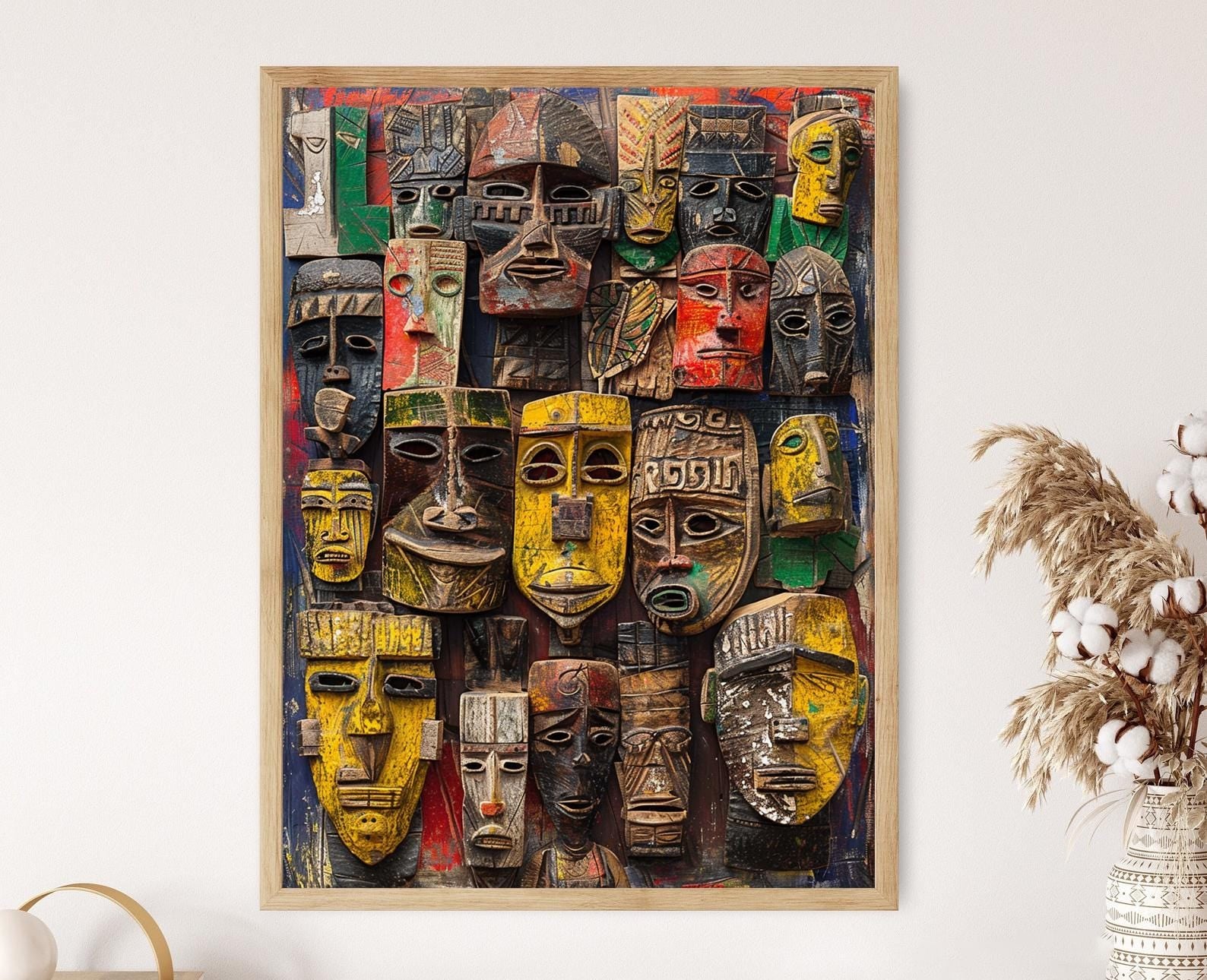 Affiche Masques du Bénin – Impression Artistique Vibrante pour la Maison