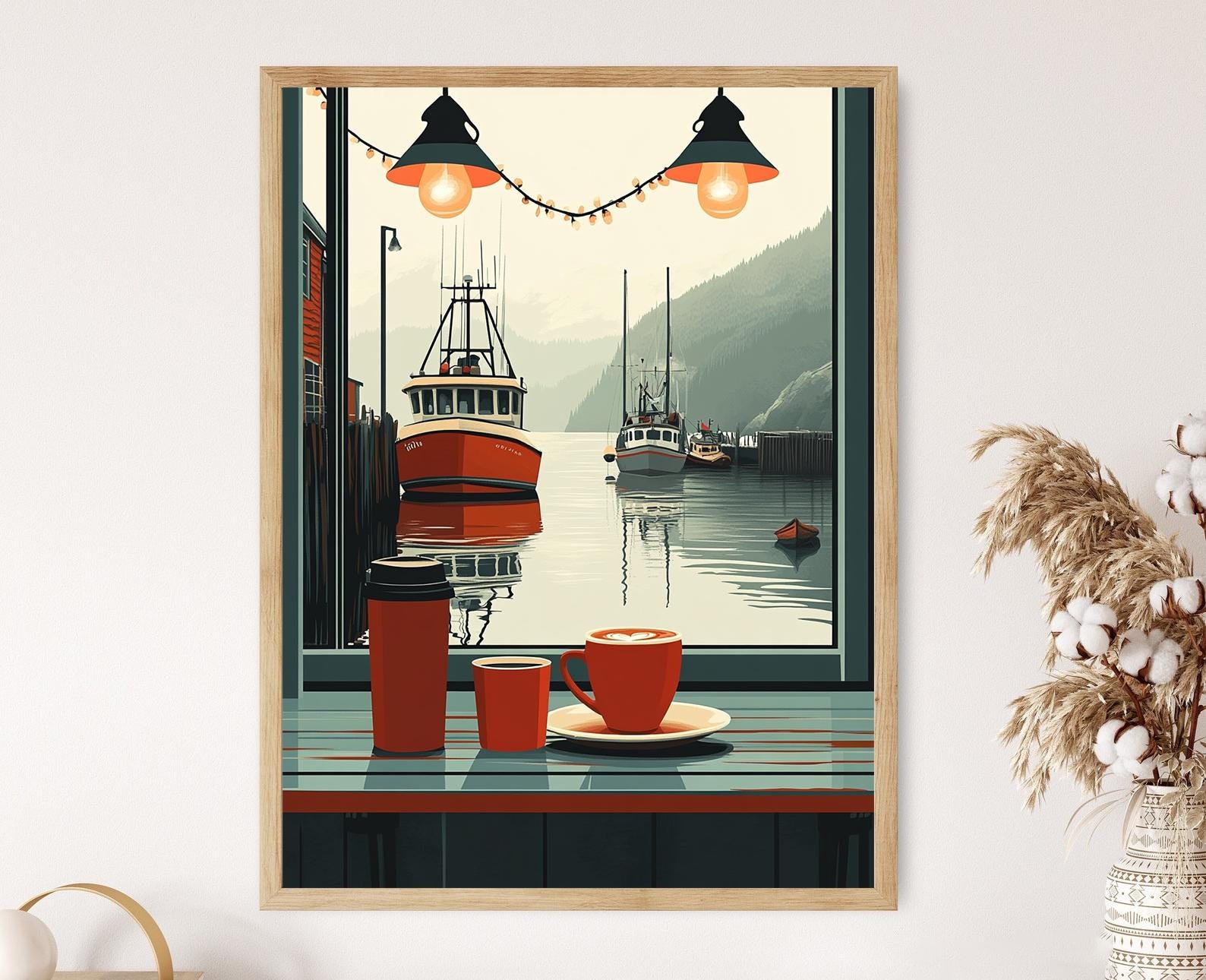 Découvrez cette affiche captivante qui capture l'ambiance mystérieuse d'un matin brumeux à Newport. L'illustration évoque la sérénité d'un café accueillant et des bateaux de pêche au large, offrant une décoration murale qui transporte votre espace vers la beauté douce et tranquille du Nord-Ouest Pacifique. Ce poster mural apporte une touche d'art mural, parfaite pour ceux qui apprécient les paysages chargés d'émotion et de charme.