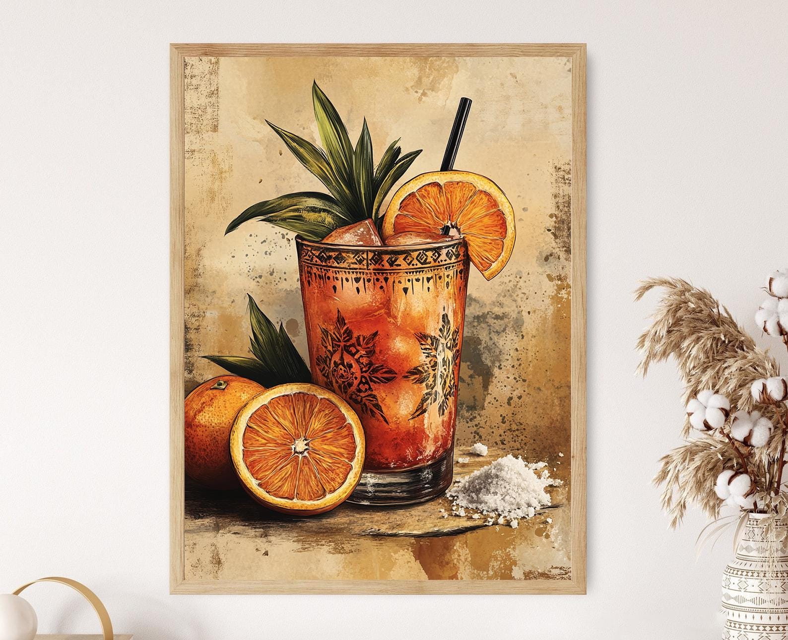 Affiche Mezcal Mexicain – Impression Art déco Zapotèque avec Oranges