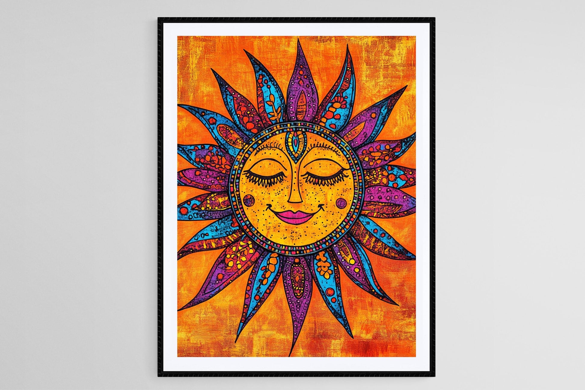 Découvrez notre affiche captivante mettant en avant un motif de soleil dans le style Mithila, où des rayons complexes et des motifs détaillés irradiant de chaleur et de positivité. Cette illustration vibrante apporte une touche d'énergie et de tradition indienne, idéale pour enrichir votre décoration murale et transformer votre espace avec un art mural inspirant. Ajoutez une dimension artistique unique à votre intérieur avec ce poster mural envoûtant.