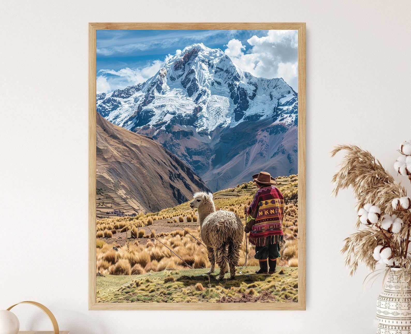 Affiche Pérou – Impression artistique d'un fermier d'alpacas, décor mural vibrant
