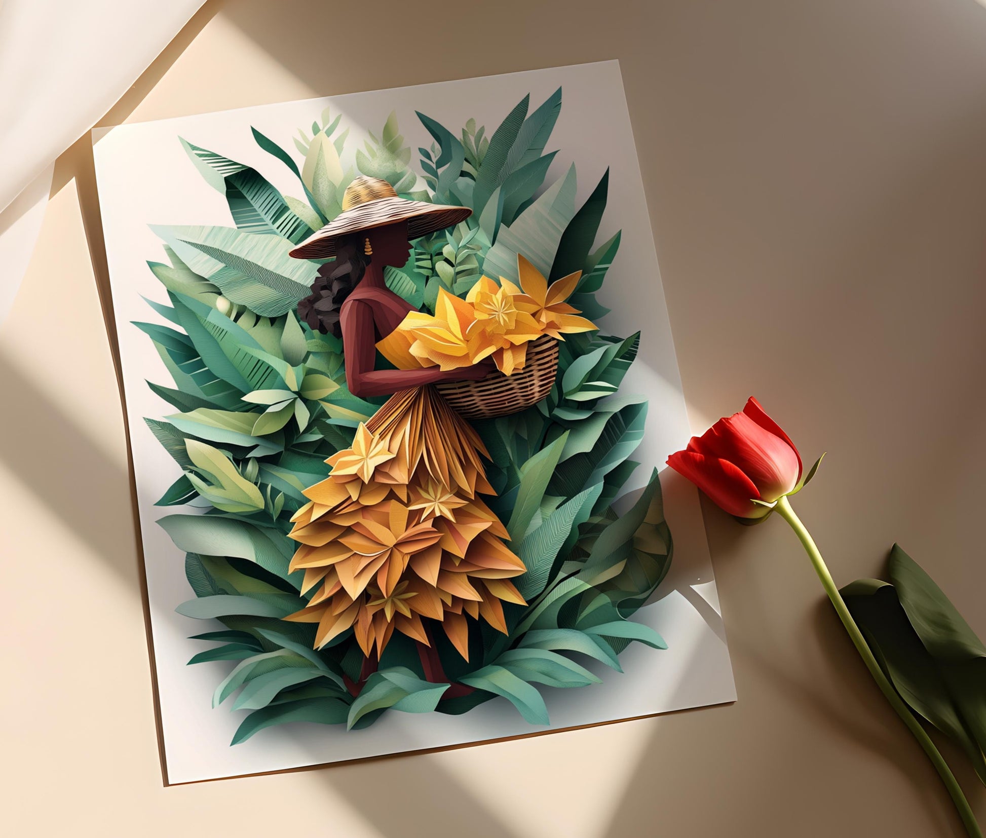Découvrez cette magnifique affiche qui évoque la sérénité d'une femme tahitienne portant un panier de caramboles, réalisée dans un style découpé unique. Cette illustration apporte une touche d'élégance tropicale et de chaleur culturelle à votre décoration murale, faisant de ce poster mural un parfait art mural pour égayer votre espace. Laissez-vous séduire par la beauté de cette œuvre et transformez votre intérieur avec une atmosphère chaleureuse et apaisante.