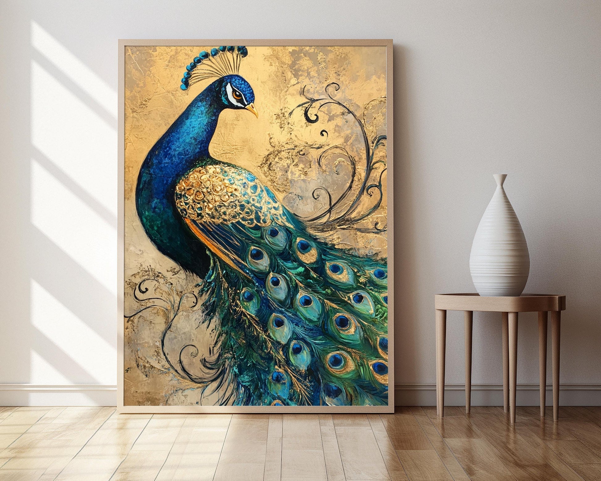 Affiche Paon Inspiré de Klimt – Poster Plumes Vibrantes et Dorées