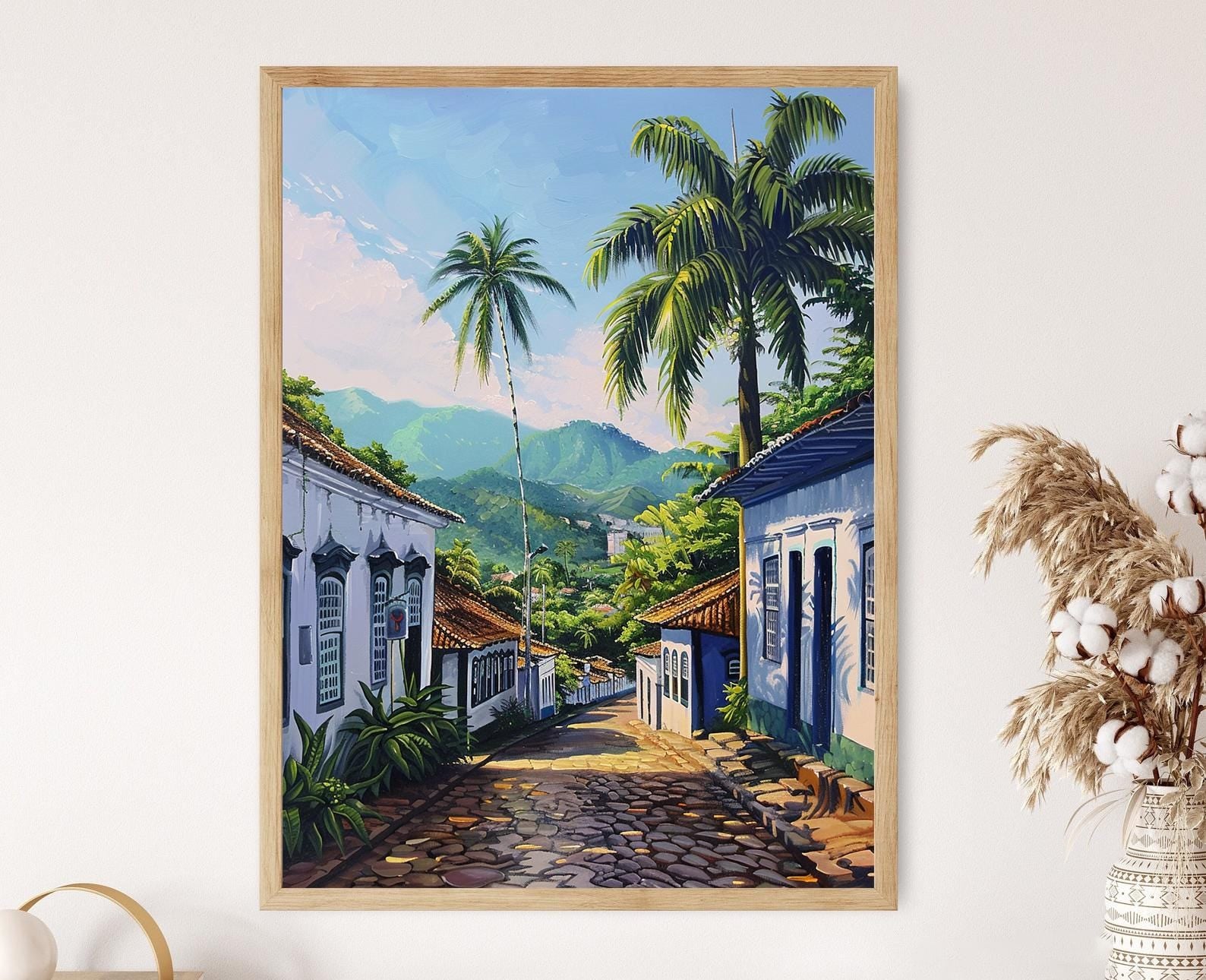 Découvrez cette magnifique affiche qui illustre le village côtier de Paraty, au Brésil, avec son architecture coloniale pittoresque et ses ruelles pavées. Cette décoration murale évoque une atmosphère sereine et enchanteresse, invitant à la tranquillité et à la beauté historique dans votre intérieur. L'art mural capte l'essence tropicale de ce lieu idyllique, apportant une touche d'évasion à votre espace.