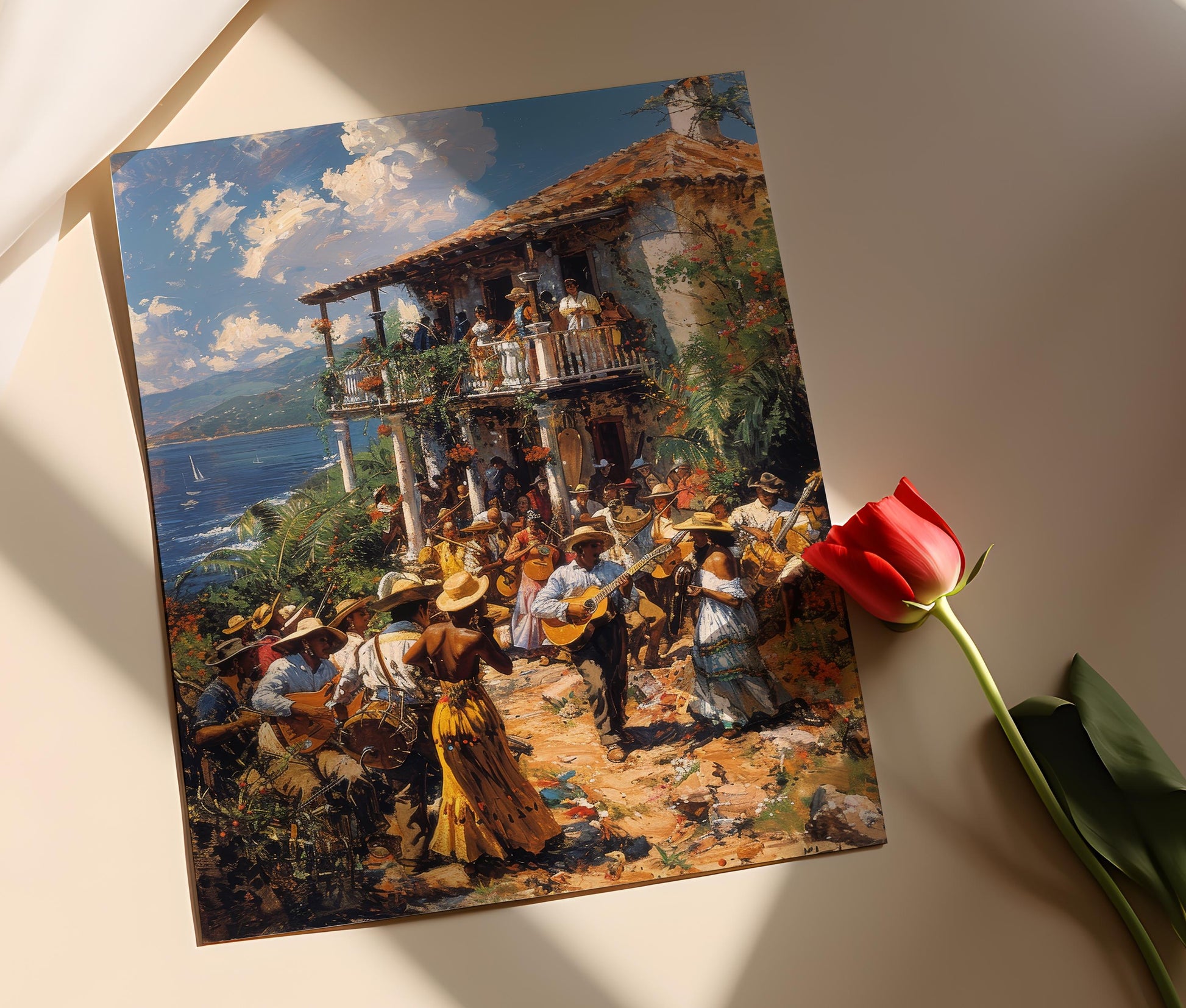 Affiche Parranda Porto-Ricaine – Impression artistique festive des Caraïbes