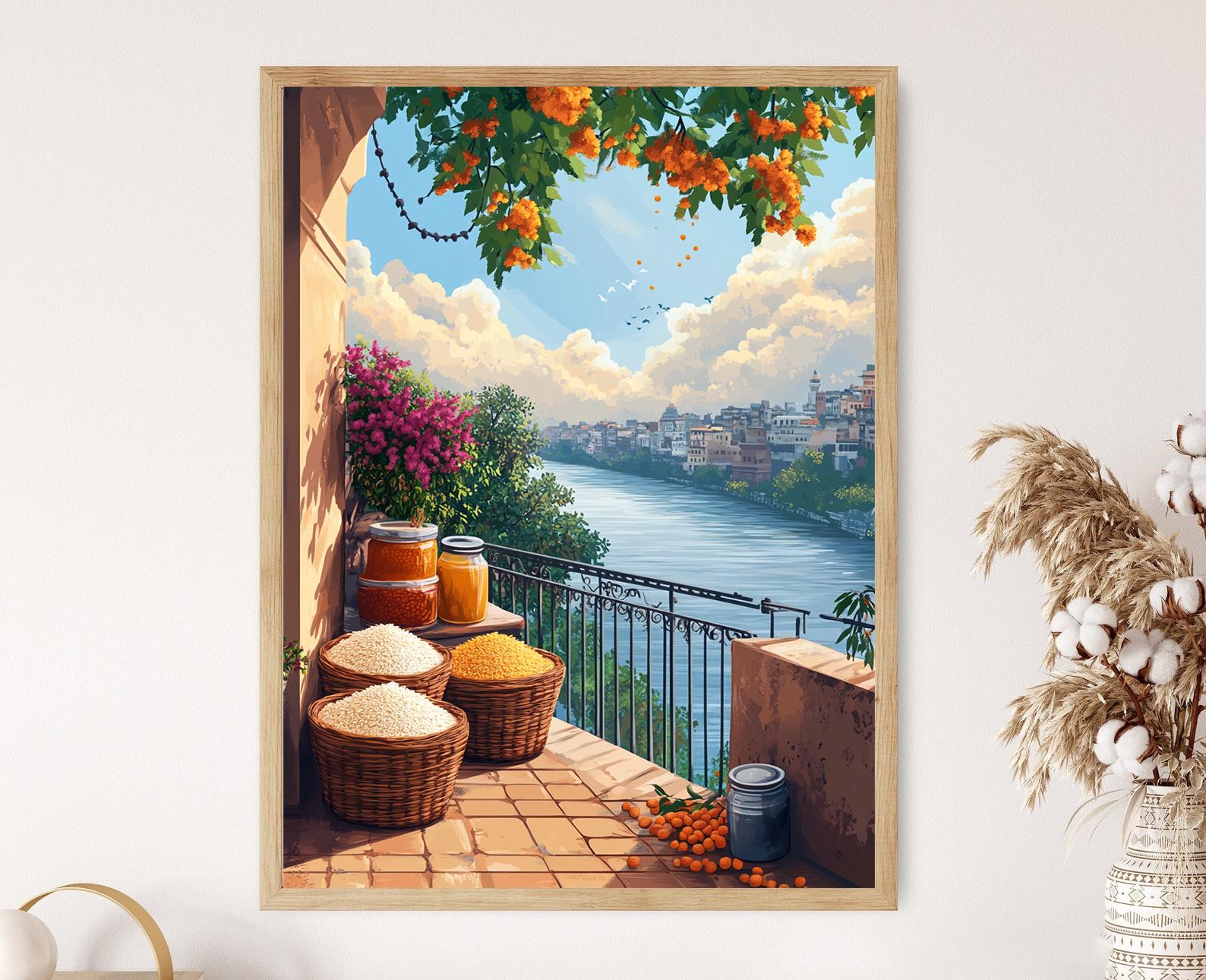 Découvrez cette magnifique affiche illustrant une scène de Patna, où la richesse des saveurs quotidiennes de Bihar se mêle à une composition terreuse. Ce poster mural, empreint de chaleur et de simplicité, évoque une douce nostalgie, transformant votre espace en une véritable décoration murale inspirée de la culture indienne. L'art mural de cette illustration vous invite à célébrer la beauté tranquille de la vie quotidienne.