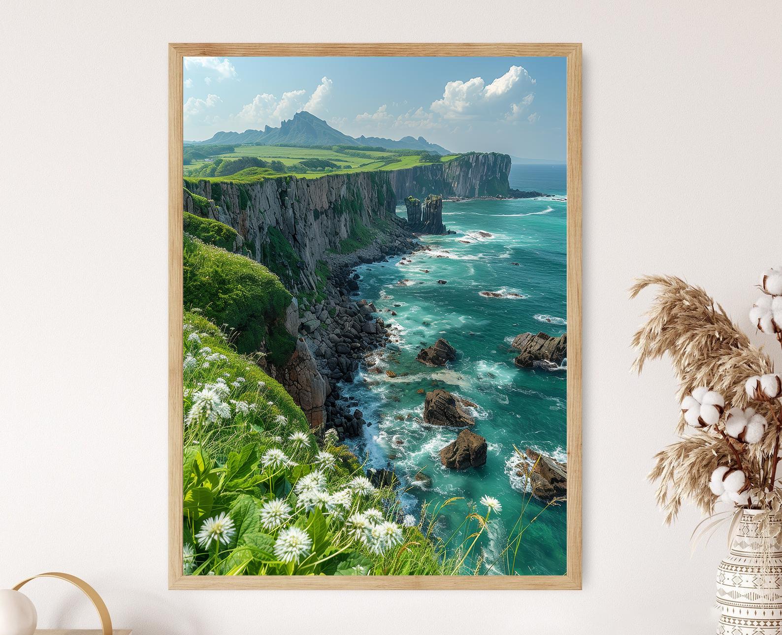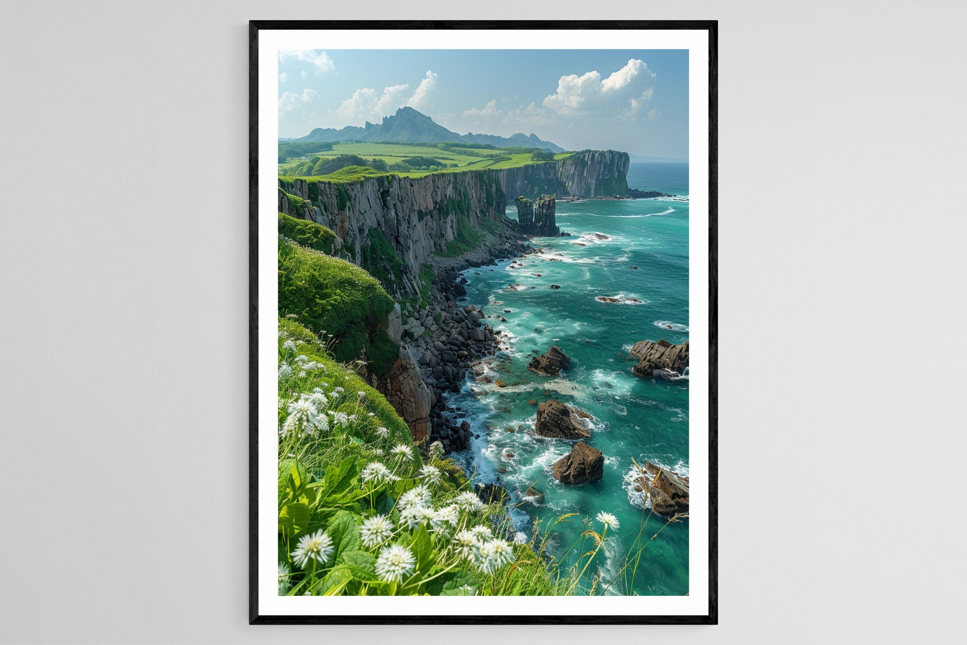 Affiche Paysage de Jeju – Poster de Rochers Volcaniques et Eaux Turquoise