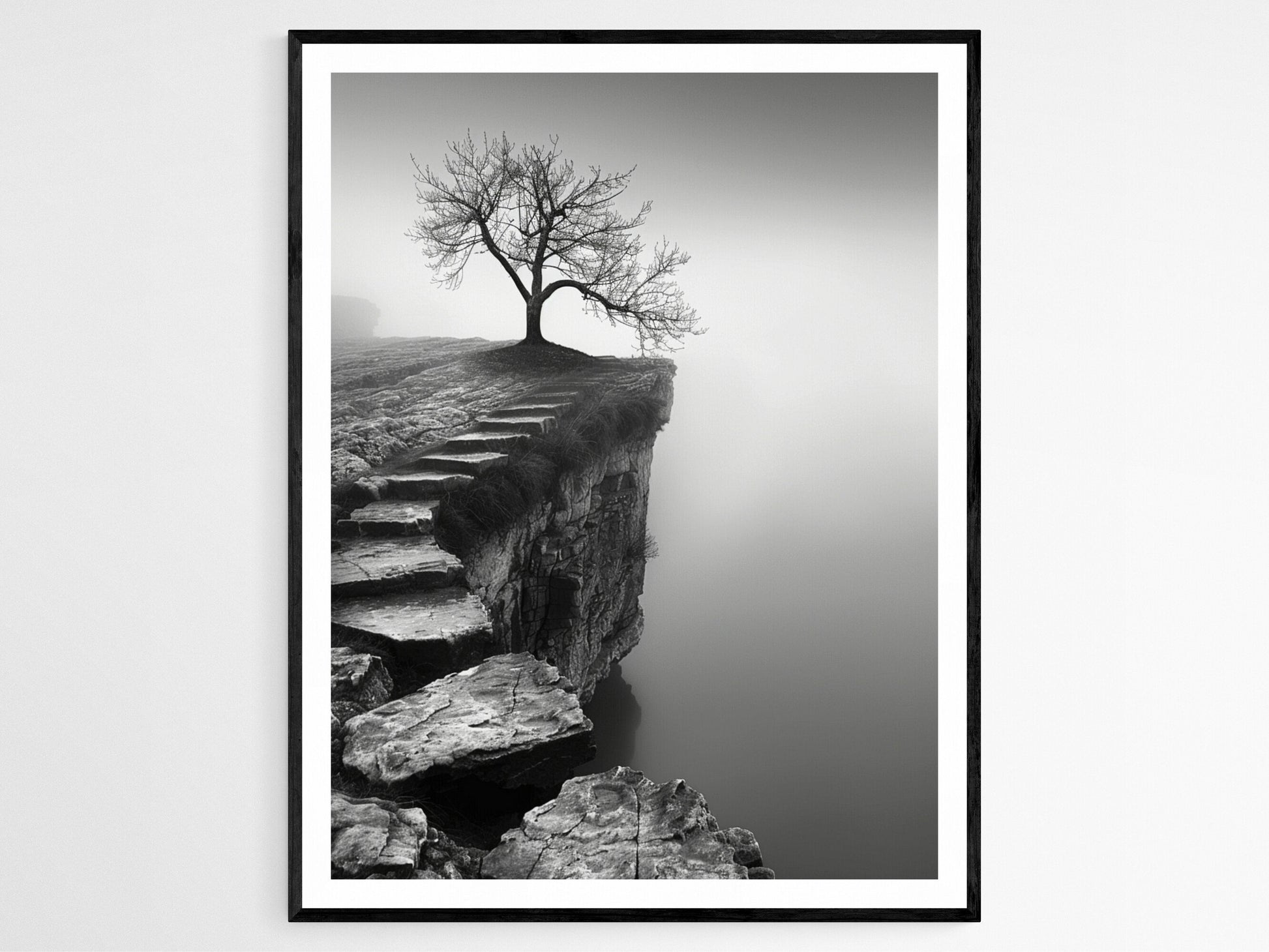 Plongez dans la beauté brute de la nature avec cette affiche captivante, mettant en avant un arbre majestueux qui défie les éléments sur un rocher escarpé. Cette illustration émotive évoque la résilience et la solitude, apportant une touche de sérénité et de force à votre décoration murale. Idéale comme poster mural, elle transforme n'importe quel espace en une véritable ode à la nature et à la contemplation.