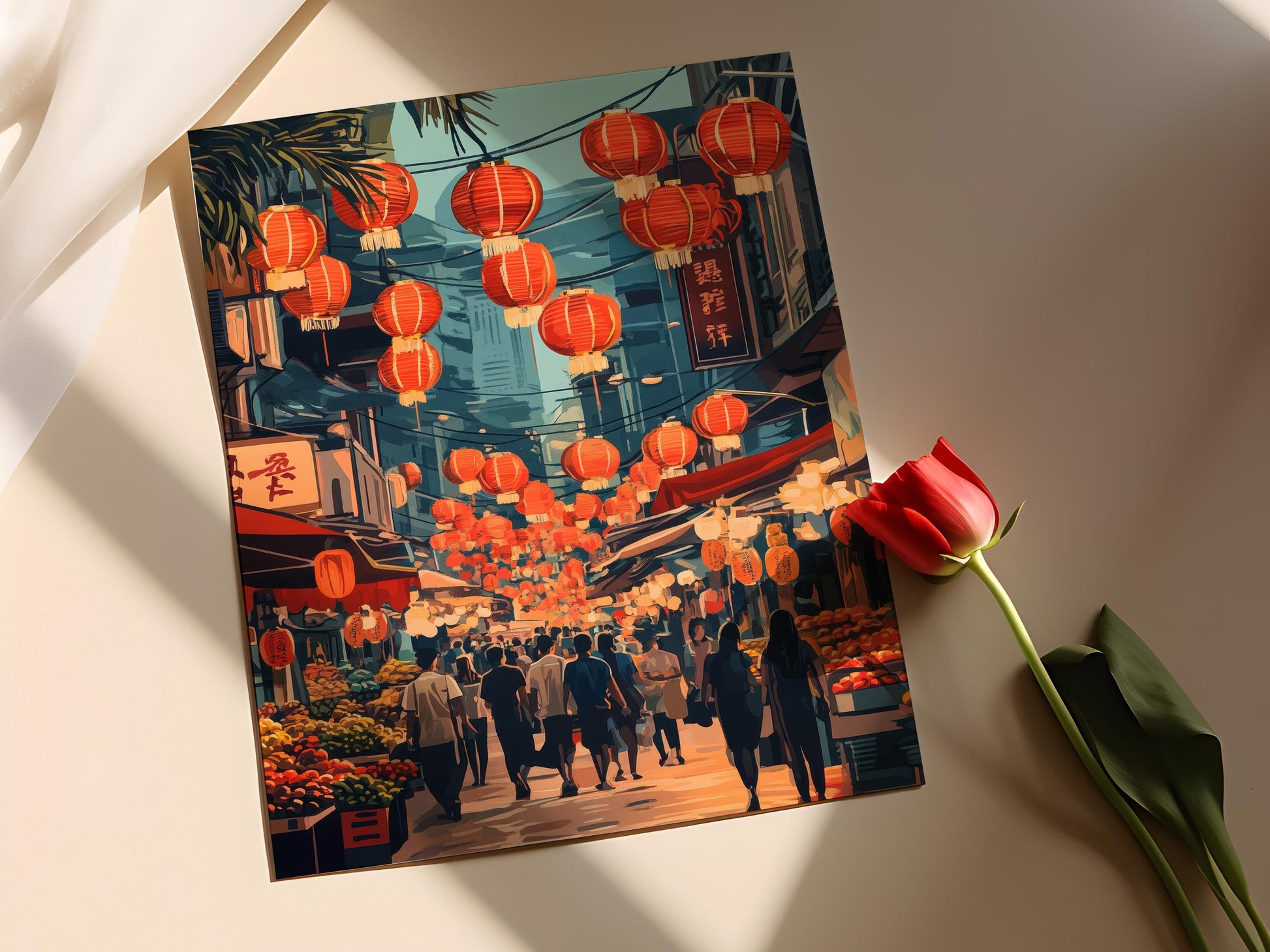Affiche Petaling Street – Impression artistique, lanternes rouges, marché