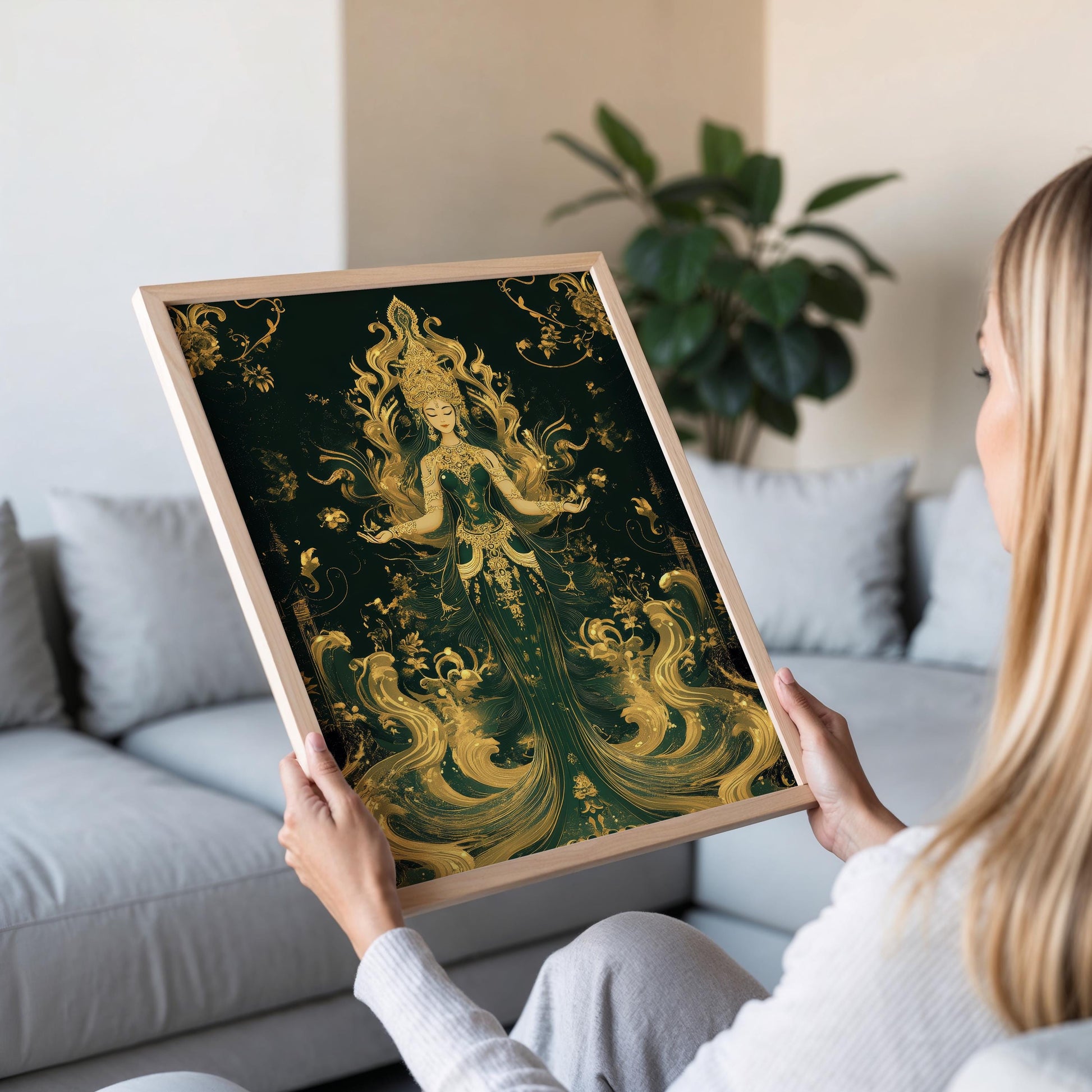 Affiche Phra Mae Thorani – Illustration de la déesse bouddhiste thaïlandaise