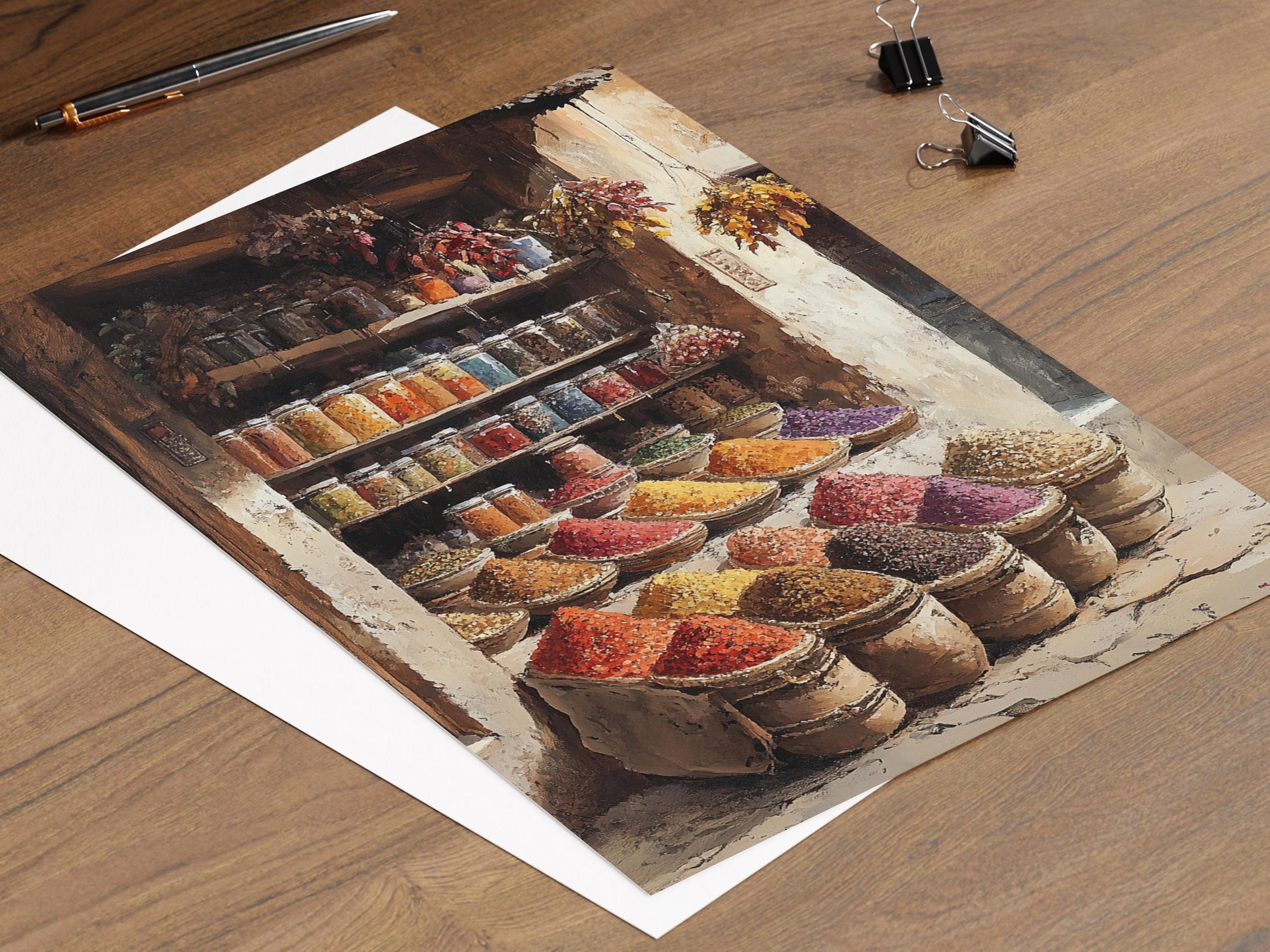 Plongez dans l'univers coloré de l'art mural avec notre affiche "Punjab Spice Store". Cette illustration vibrante évoque l'animation des marchés indiens, remplie de saveurs et de richesses culturelles, apportant ainsi une touche d'authenticité à votre décoration murale. Idéale pour transformer vos espaces, ce poster mural illuminera votre intérieur avec une explosion de couleurs et d'émotions.