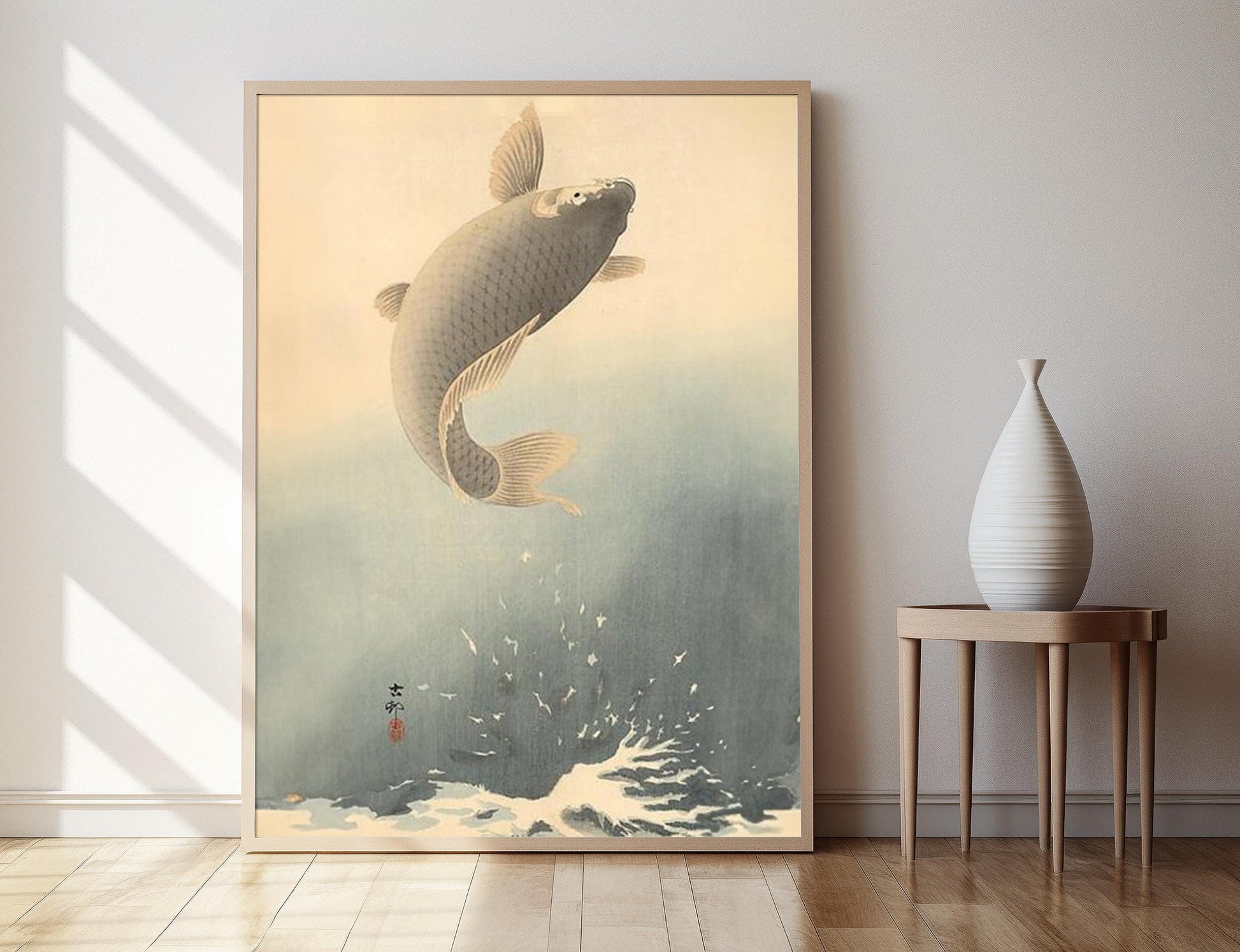 Affiche Poissons Sautants – Poster Art Shin Hanga par Ohara Koson 1910