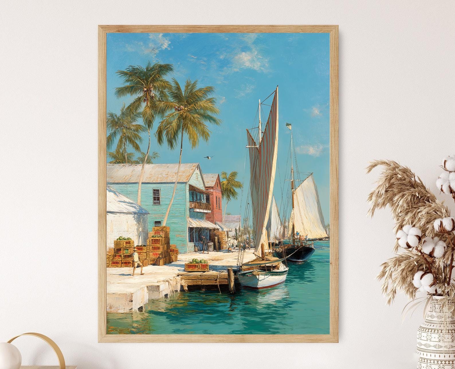 Affiche Port Historique de Key West – Tableau de Voilier Tropical 1850s