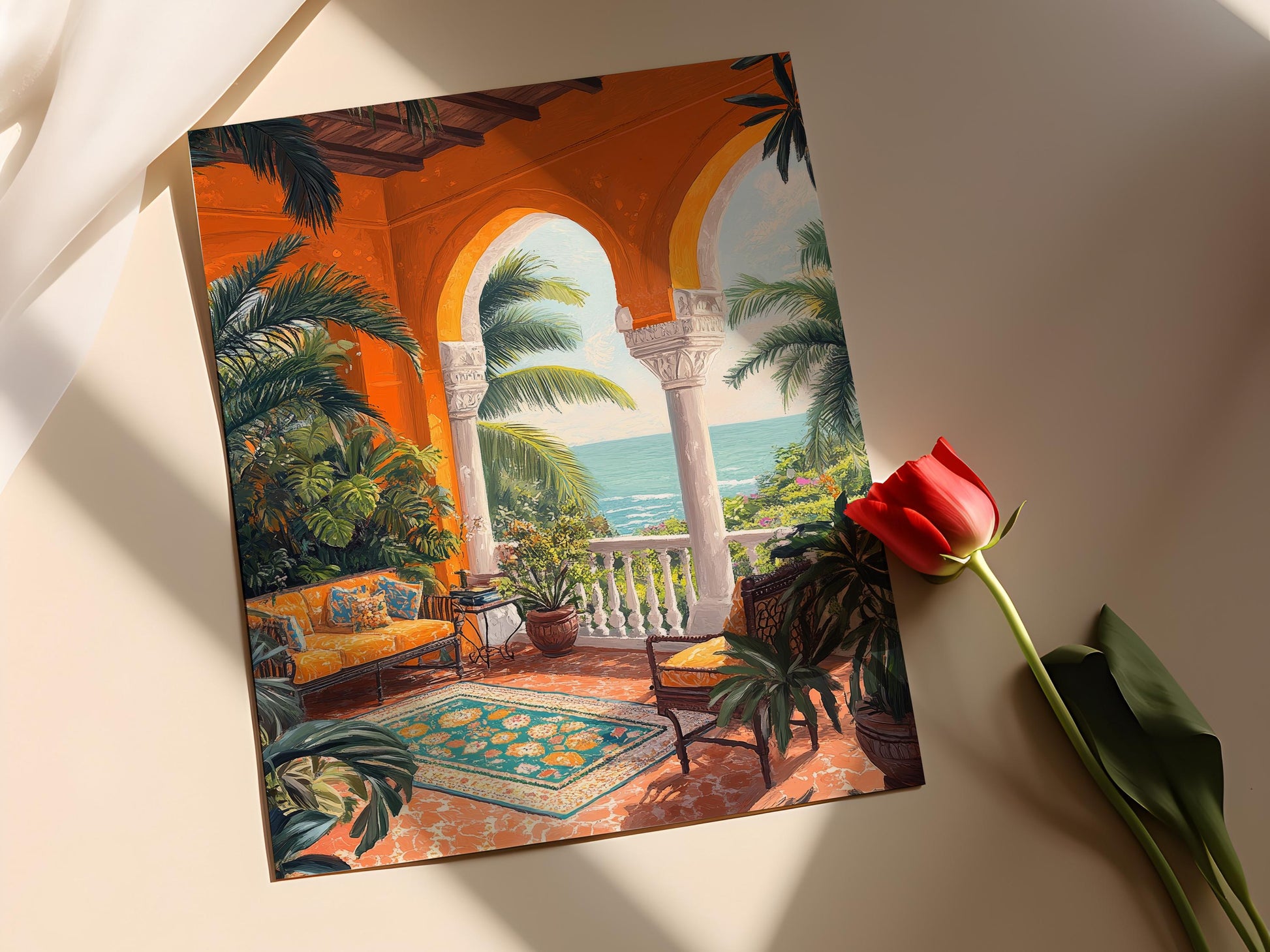 Découvrez cette magnifique affiche qui immortalise une terrasse paisible à Puducherry, ornée de motifs Kolam et de meubles au style français. L'illustration évoque une atmosphère sereine, où la beauté du coucher de soleil pastel sur la Baie de Bengal crée une harmonie parfaite entre cultures. Parfaite pour toute décoration murale, ce poster mural apportera une touche d'élégance et d'évasion à votre espace.