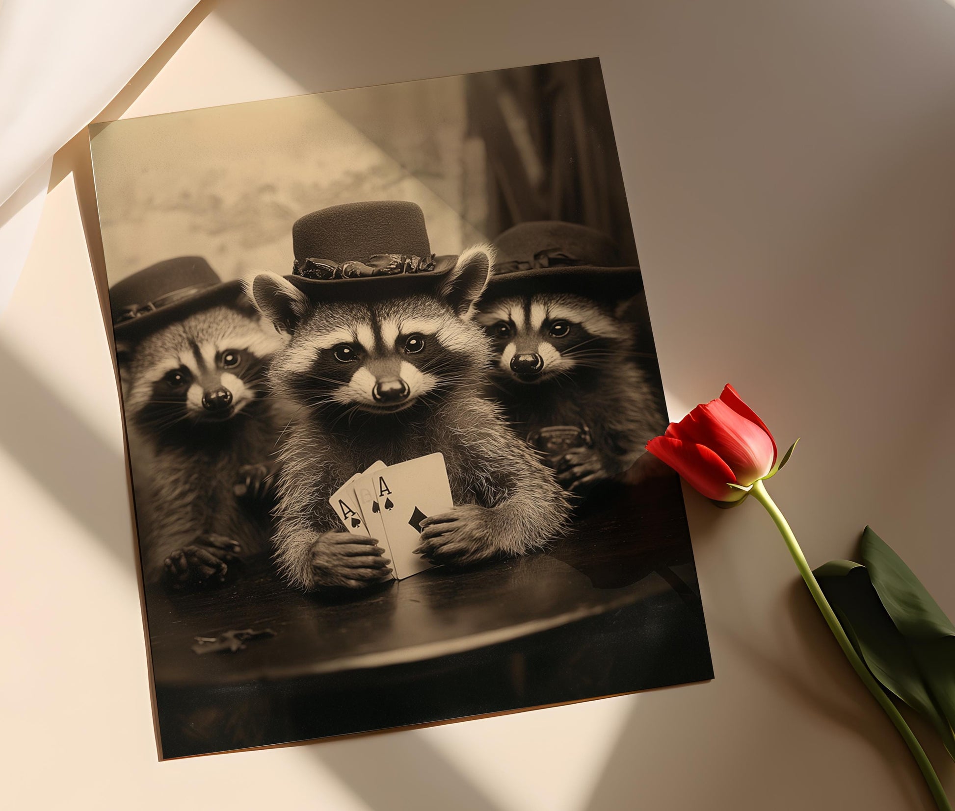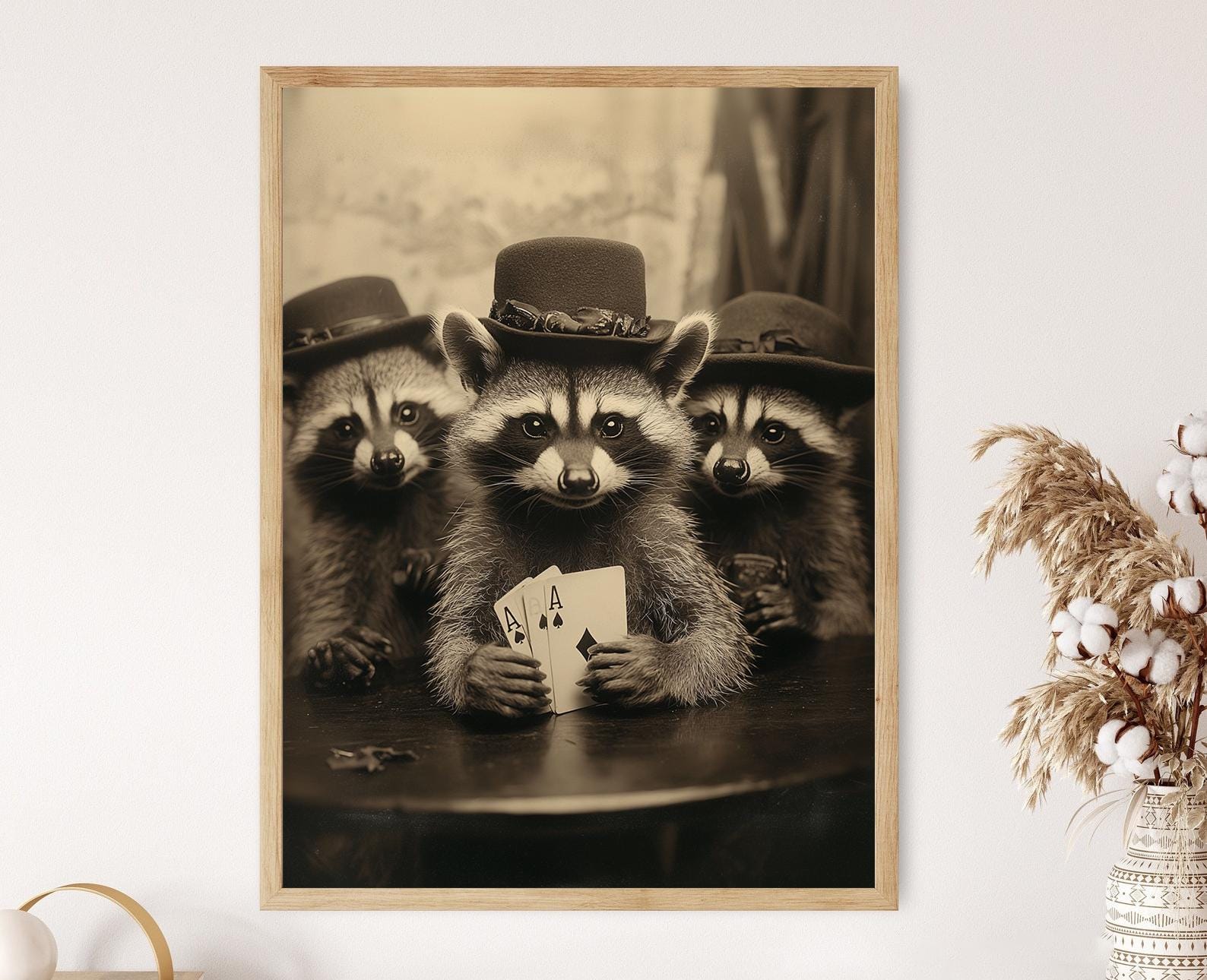 Affiche Rassurante - Poster Raton Laveur Joueur de Poker Vintage