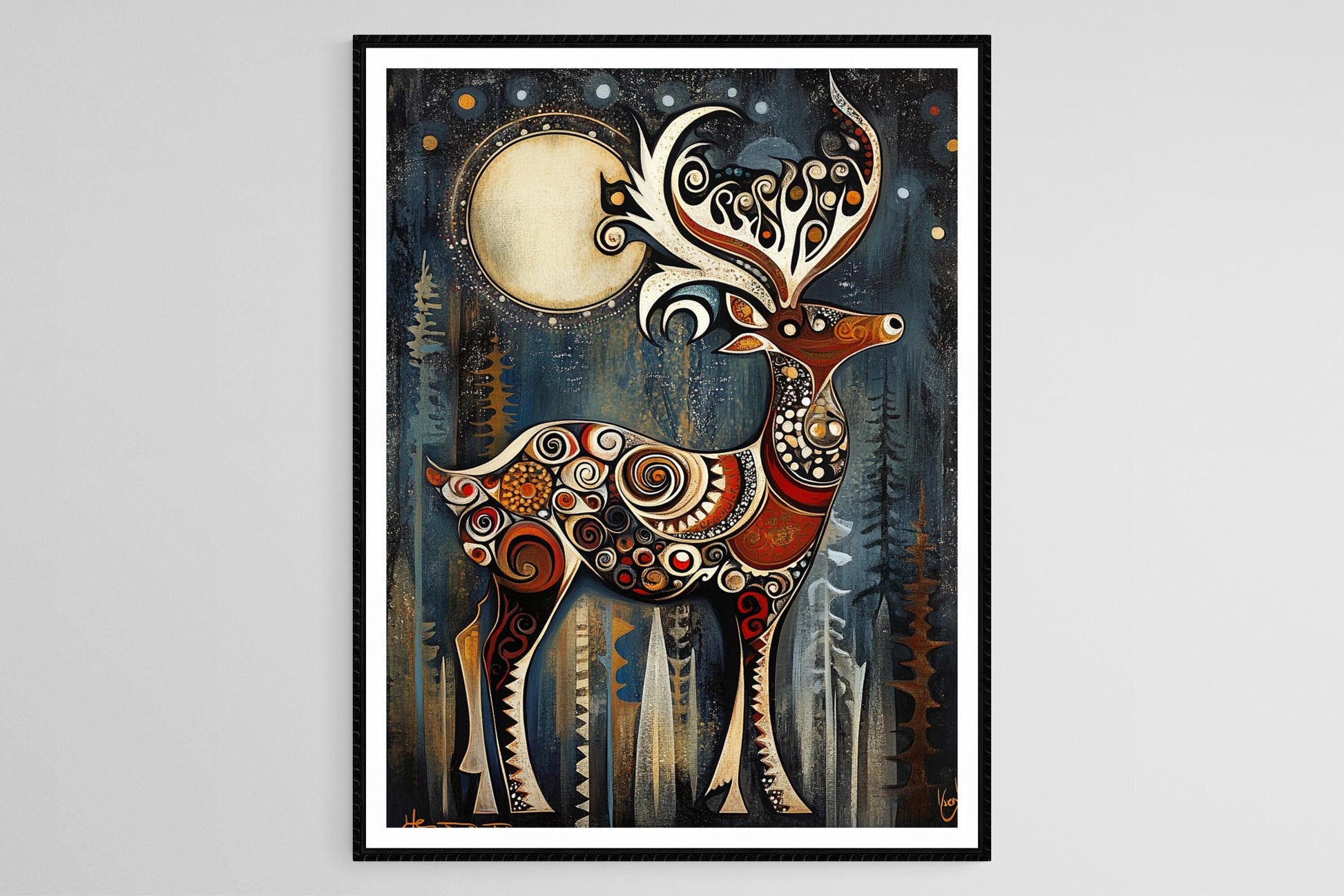 Découvrez cette magnifique affiche inspirée de l'art Haida, laquelle illustre un majestueux renne, emblème de grâce et de force dans la culture autochtone. Avec ses motifs audacieux et son design élaboré, ce poster mural devient une véritable œuvre d'art mural qui apportera une touche d'émotion et d'authenticité à votre décoration murale. Parfaite pour enrichir votre collection d'illustrations et célébrer la beauté de la nature.
