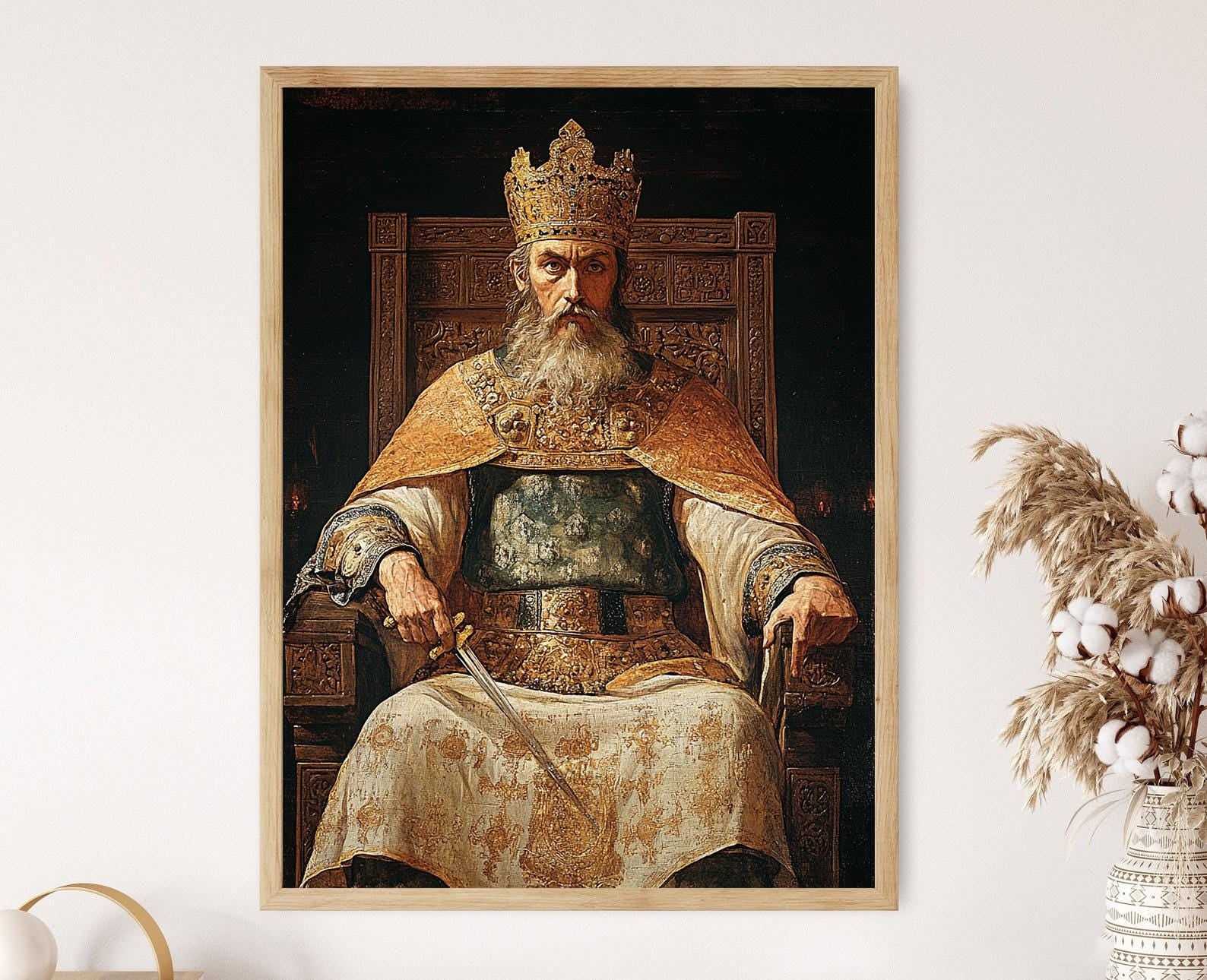 Découvrez l'affiche "Roi Anglo-Saxon", une illustration captivante qui plonge au cœur de l'époque médiévale anglaise. Ce poster mural dégage une atmosphère majestueuse et intemporelle, mêlant des détails raffinés et des couleurs riches qui sublimeront votre décoration murale. Éveillez l'esprit chevaleresque de votre intérieur avec cette œuvre d'art mural qui raconte une histoire d'honneur et de pouvoir.