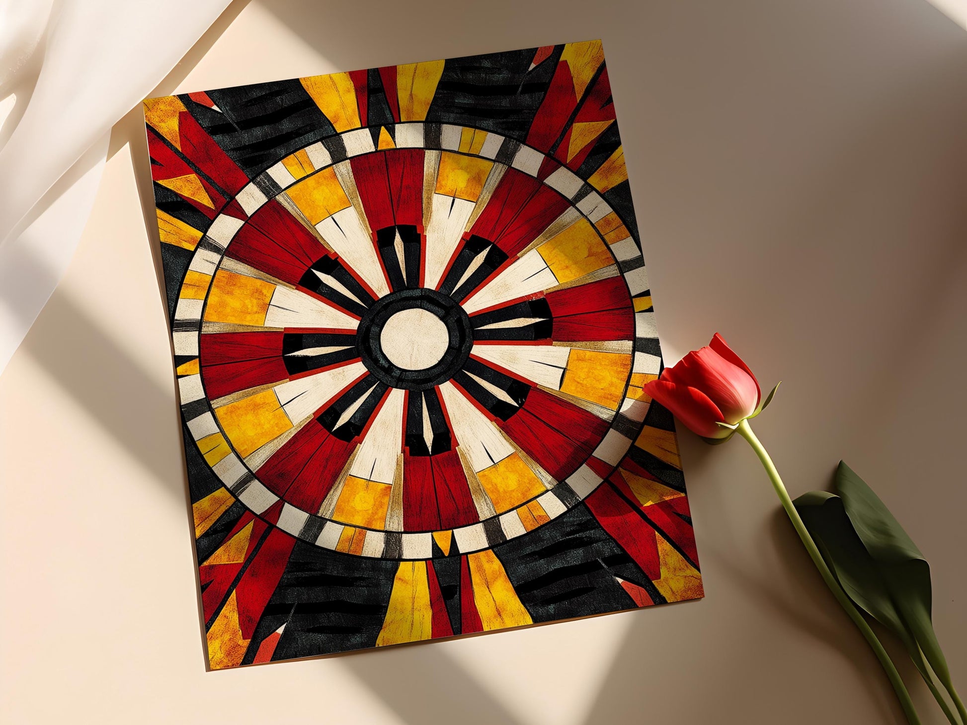 Découvrez cette magnifique affiche inspirée du motif du cercle de médecine Lakota, où des couleurs vibrantes et des motifs délicats se conjuguent pour évoquer l'équilibre et l'harmonie. Cette illustration captivante constitue une décoration murale parfaite pour apporter une touche culturelle et spirituelle à votre intérieur. Transformez votre espace avec cet art mural qui invite à la sérénité et à la réflexion.