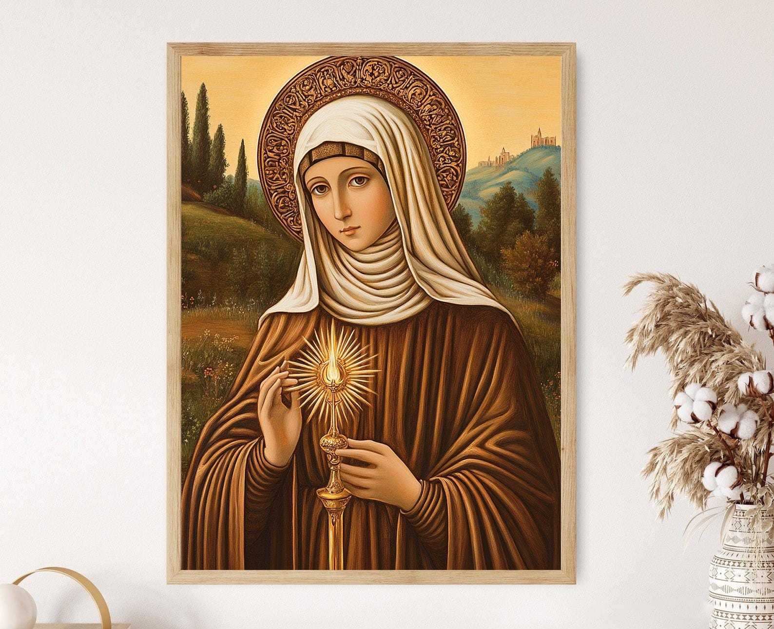 Affiche Sainte Claire d'Assise – Art Dévotionnel Catholique, Imprimé de Monstrance