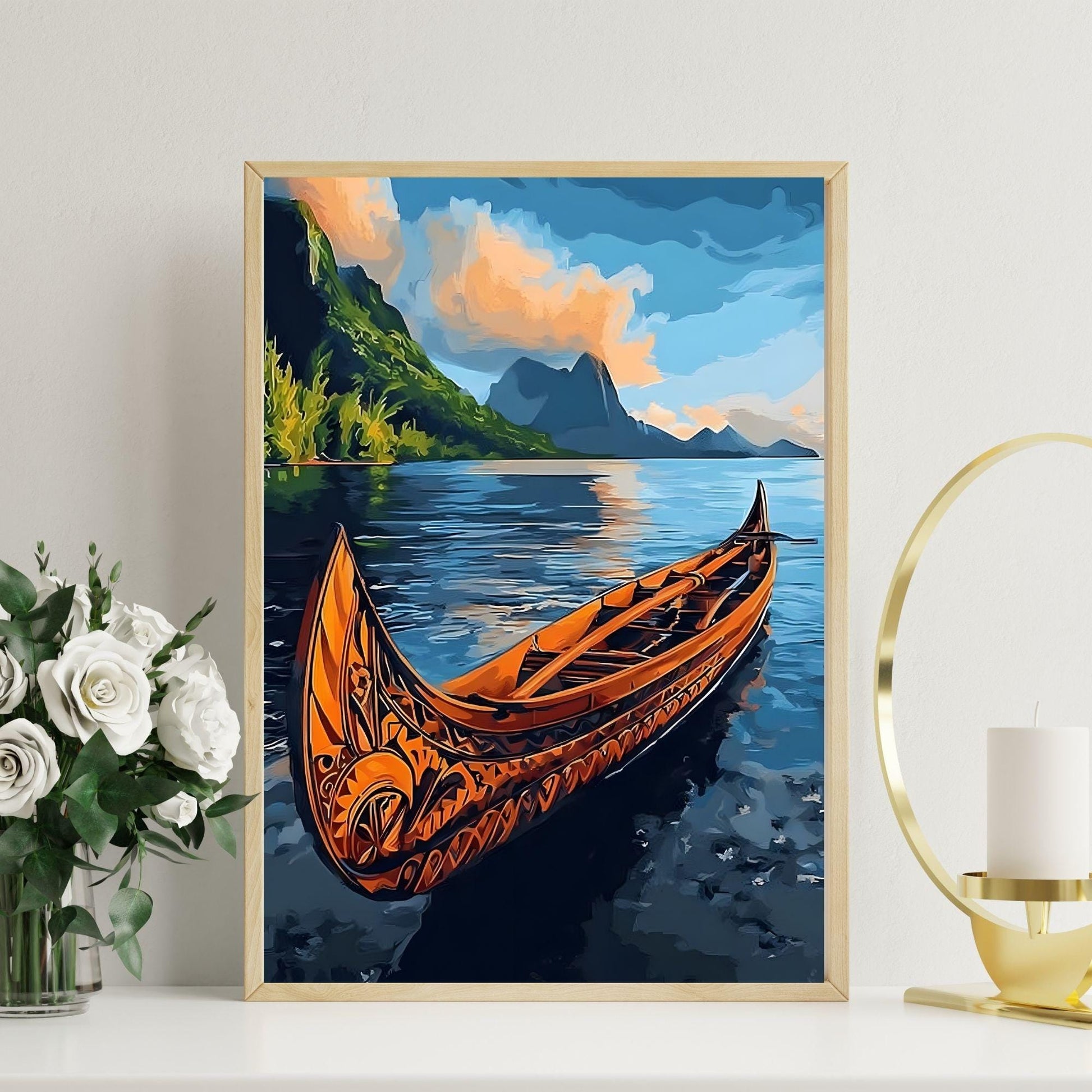 Apportez la beauté des îles du Pacifique dans votre intérieur avec cette affiche artistique de pirogue samoane. Inspirée par l’art polynésien et l’héritage insulaire, elle célèbre l’harmonie entre la terre, la mer et la culture.