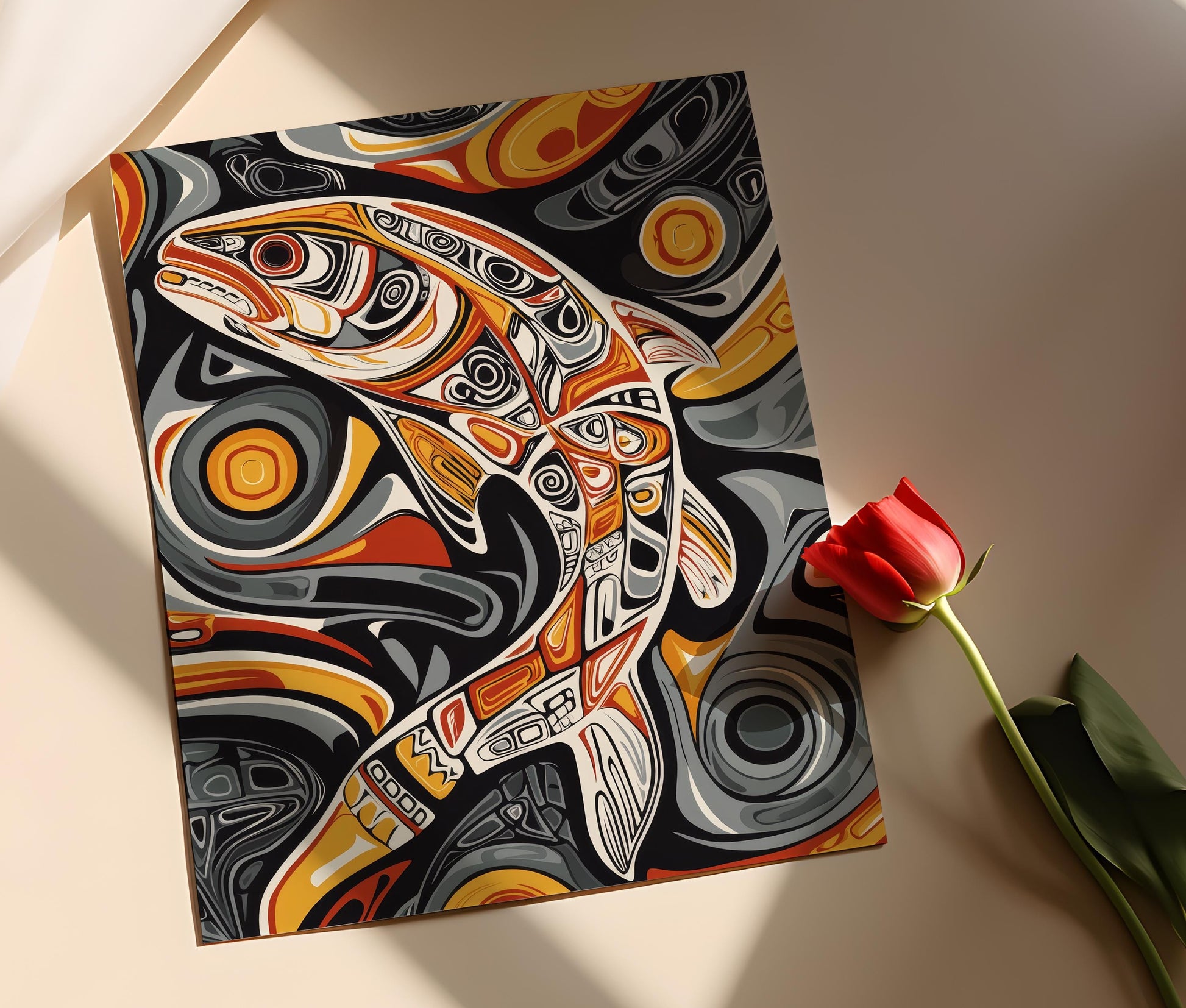 Affiche Saumon Haida – Impression Art Formline Autochtone Décor