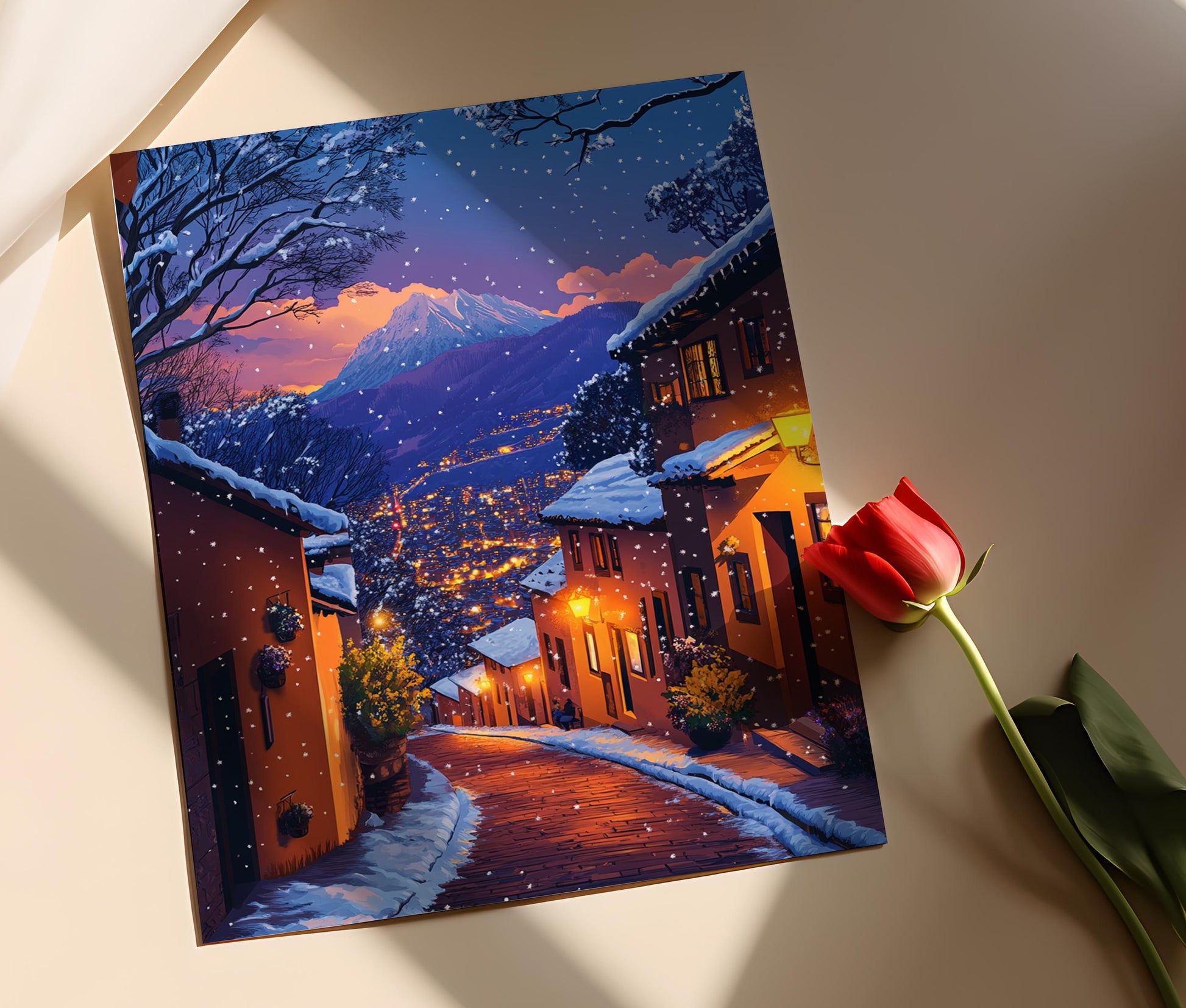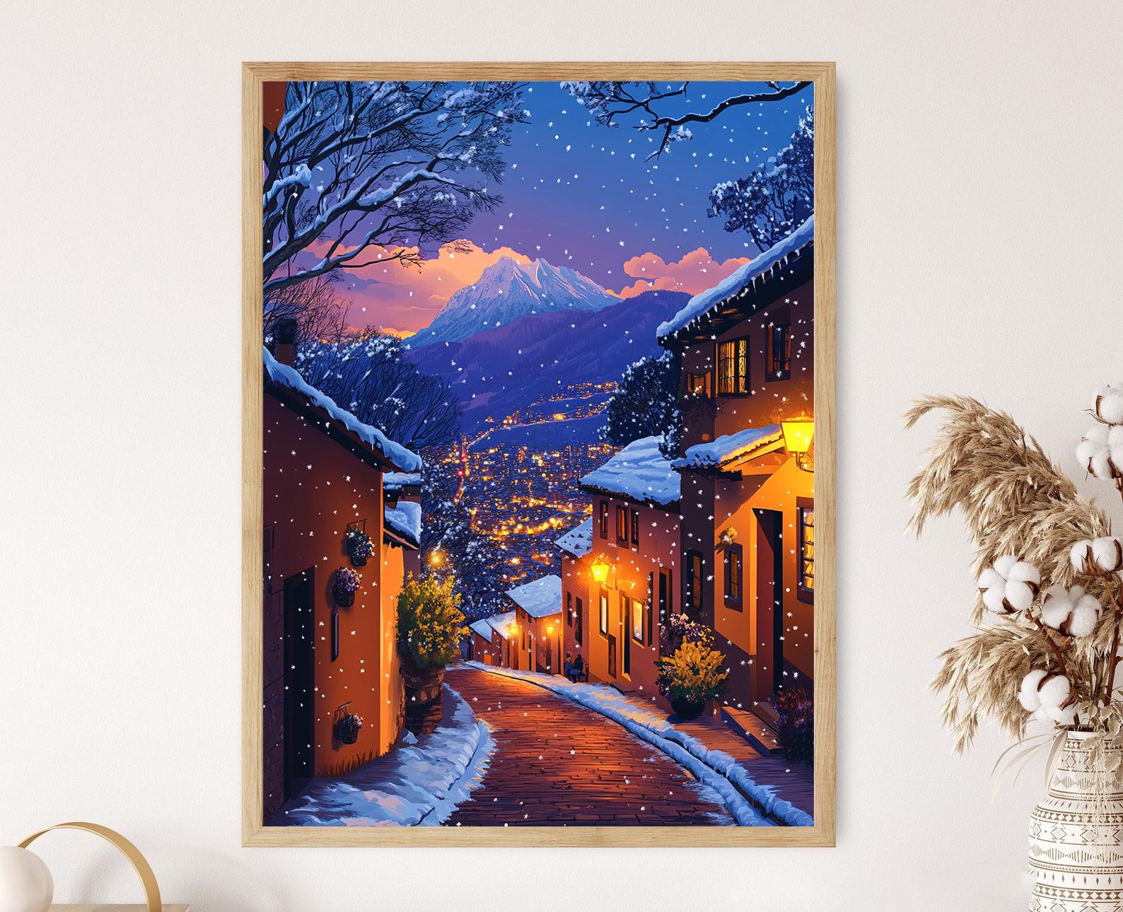 Affiche Scène de Bogotá – Poster Artistique de la Ville Enneigée