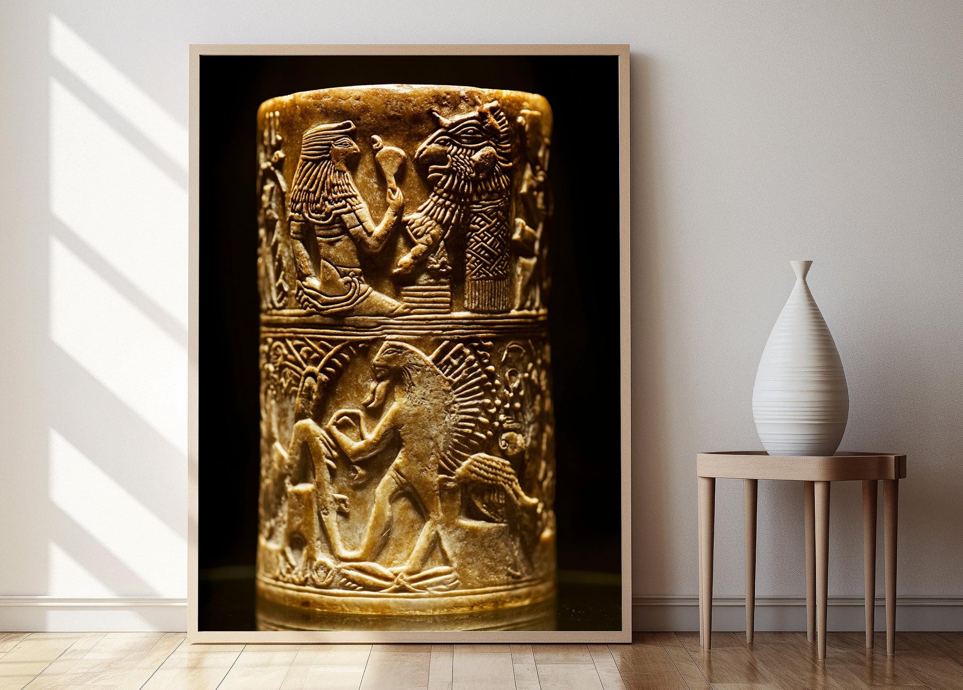 Affiche Sceau Cylindrique Mésopotamien – Art Royal et Symboles Religieux