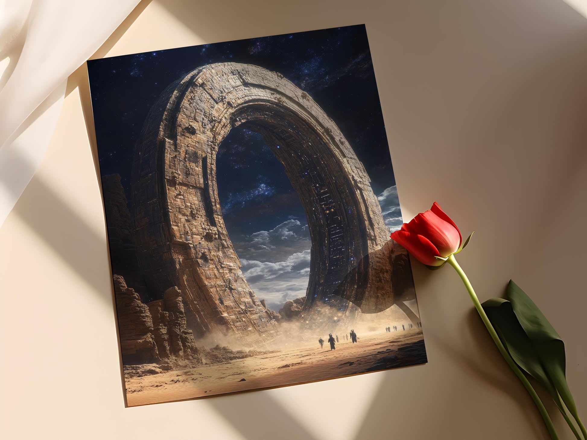 Affiche Science-Fiction – Illustration de portail cosmique dans le désert