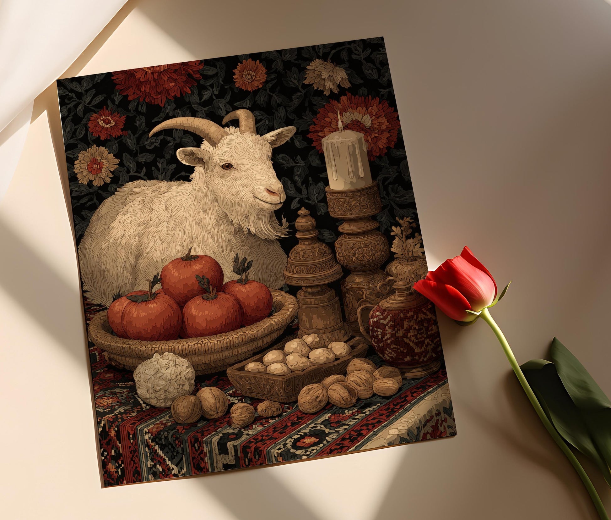 Affiche Solstice d'Hiver Slave – Illustration de Chèvre en Paille