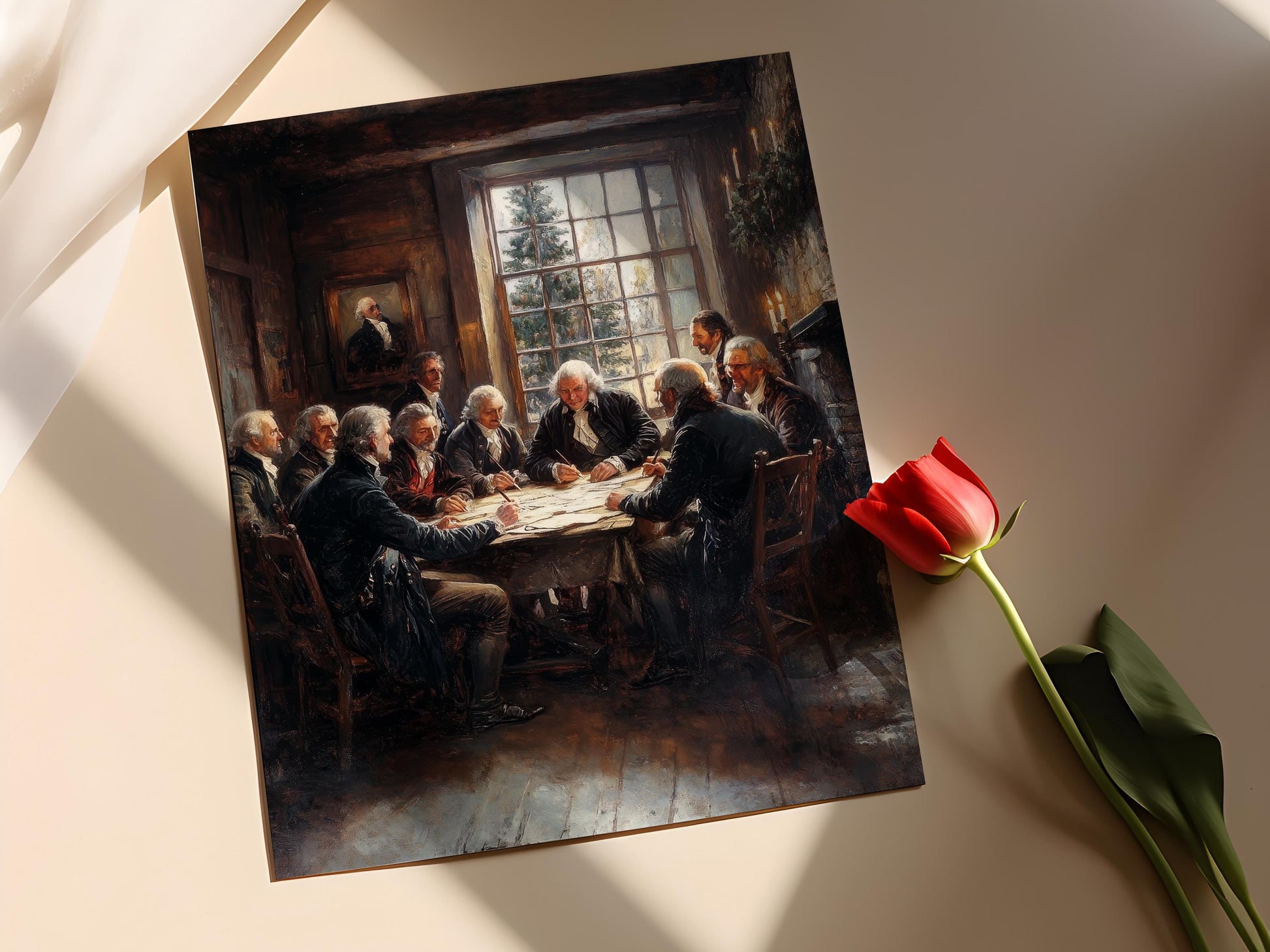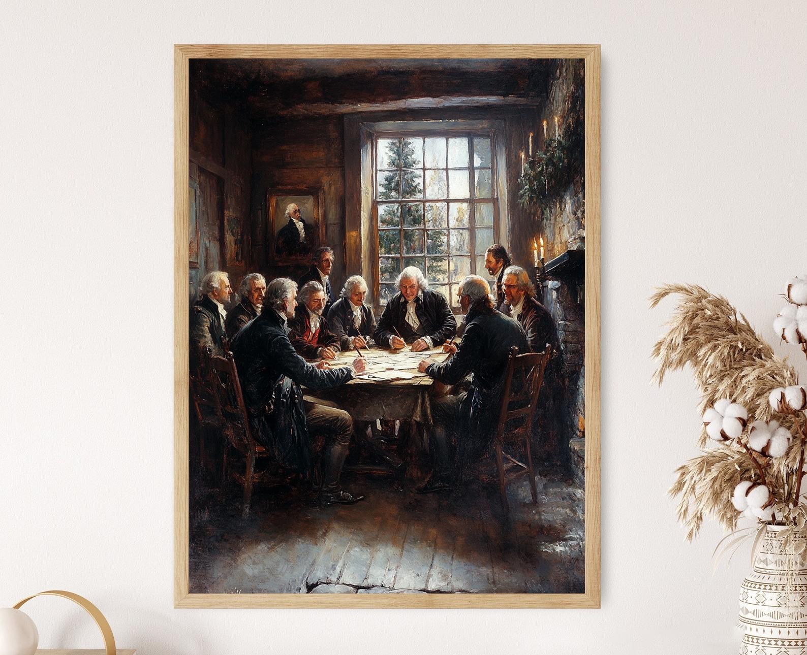 Découvrez cette affiche captivante qui rend hommage aux membres des Sons of Liberty, immortalisés dans une illustration évocatrice de la Déclaration d'Indépendance. Avec son style historique et son émotion puissante, ce poster mural devient une véritable décoration murale, apportant une touche d'art mural inspirant à votre intérieur. Parfait pour ceux qui souhaitent célébrer l'héritage et la détermination d'une époque charnière.