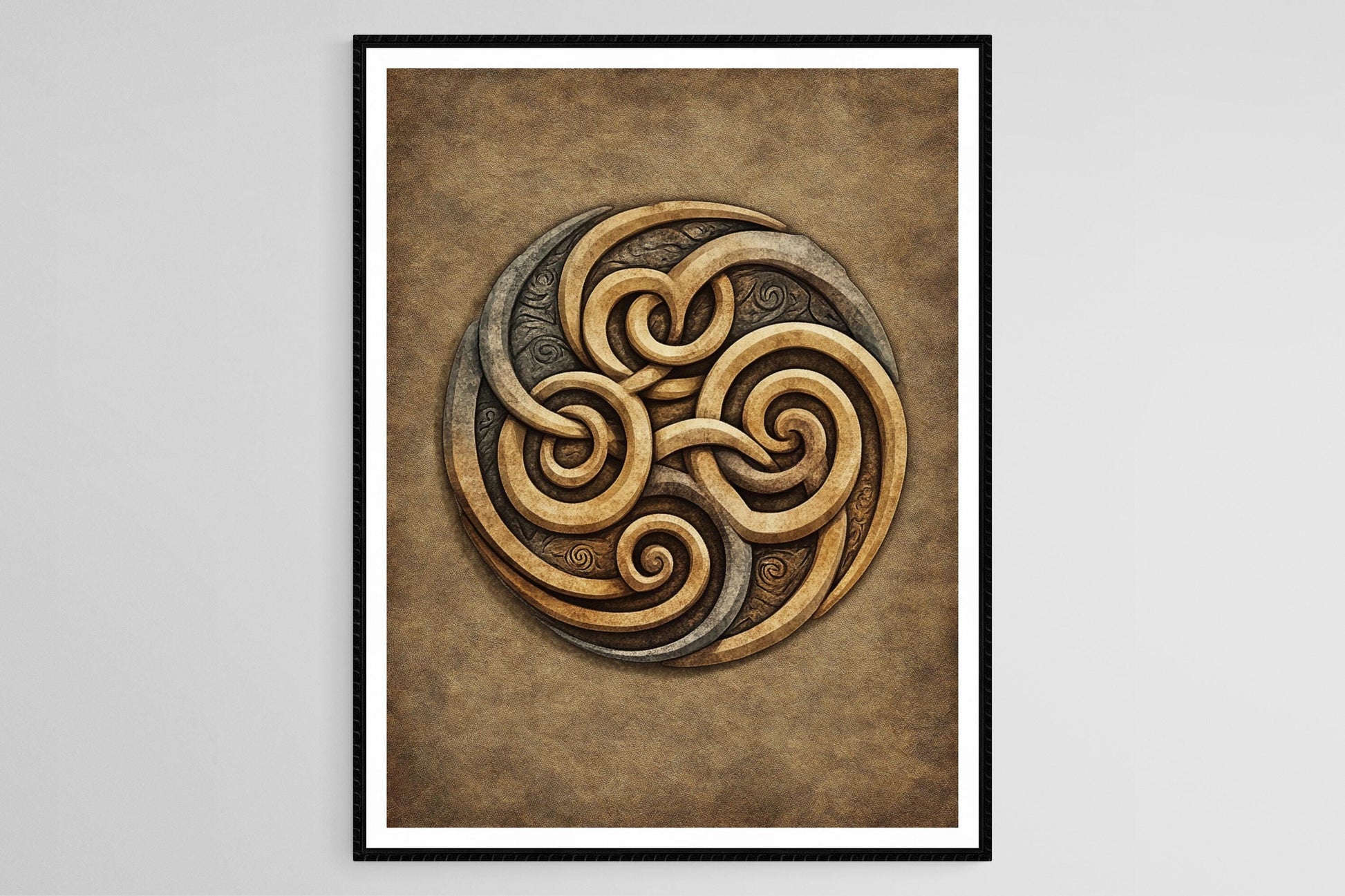 Affiche Spirale Celte – Poster Design Circulaire Évocateur en Tons Terre