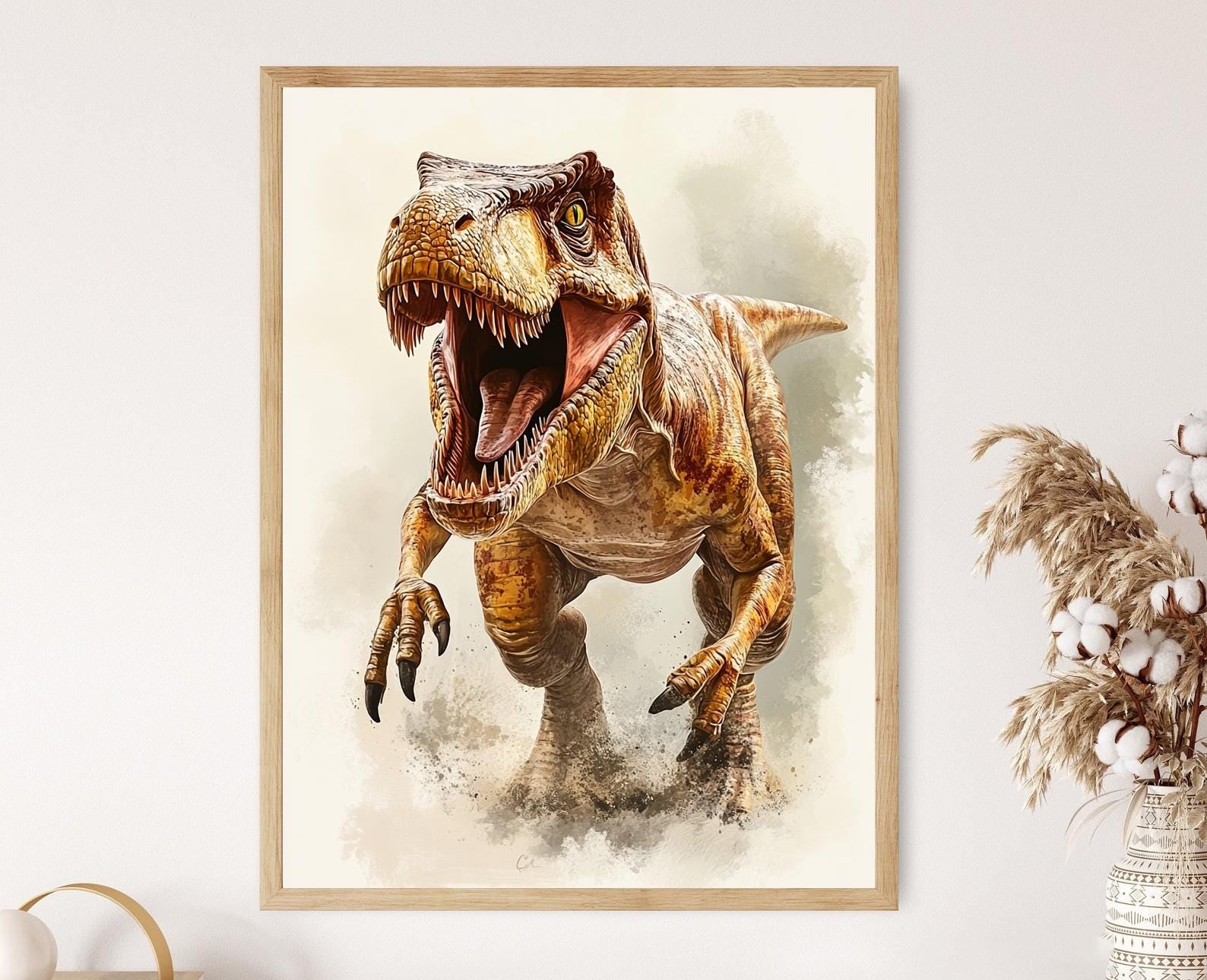 Affiche T-Rex Rugissant – Art Préhistorique pour Décor Murale