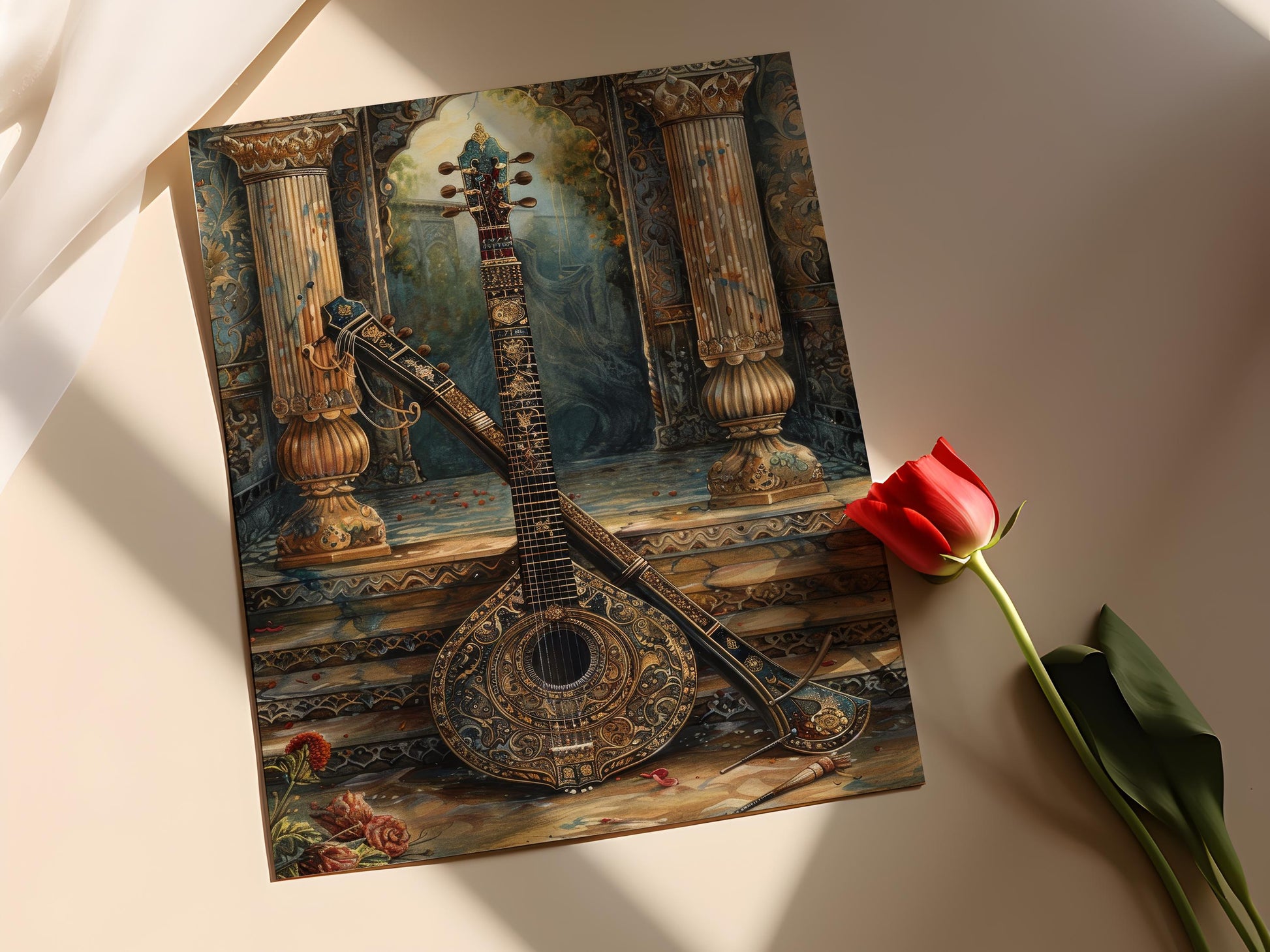 Affiche Tanpura Exquise – Poster Art Détails Riches d'Instrument Indien