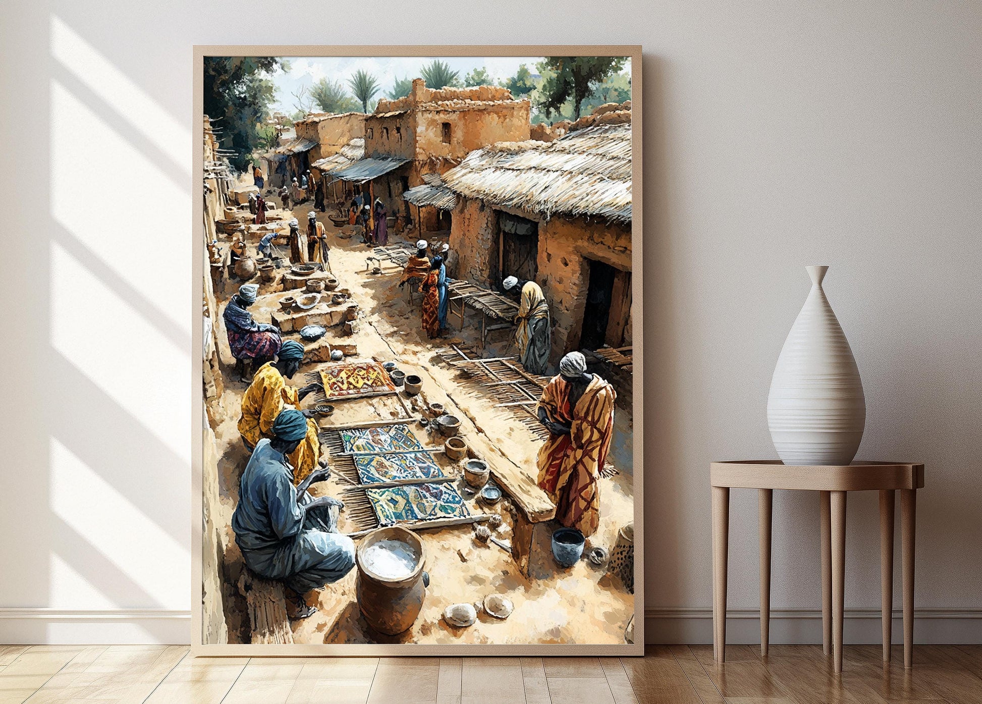 Découvrez cette affiche captivante qui met en lumière le savoir-faire des tisserands maliens, illustrant des motifs géométriques et des détails rustiques. Cette décoration murale évoque une profonde connexion avec l'héritage textile du Mali, apportant une touche d'authenticité et d'émotion à votre espace. Parfaite en tant qu'art mural, cette illustration séduira les amateurs de culture et de design.
