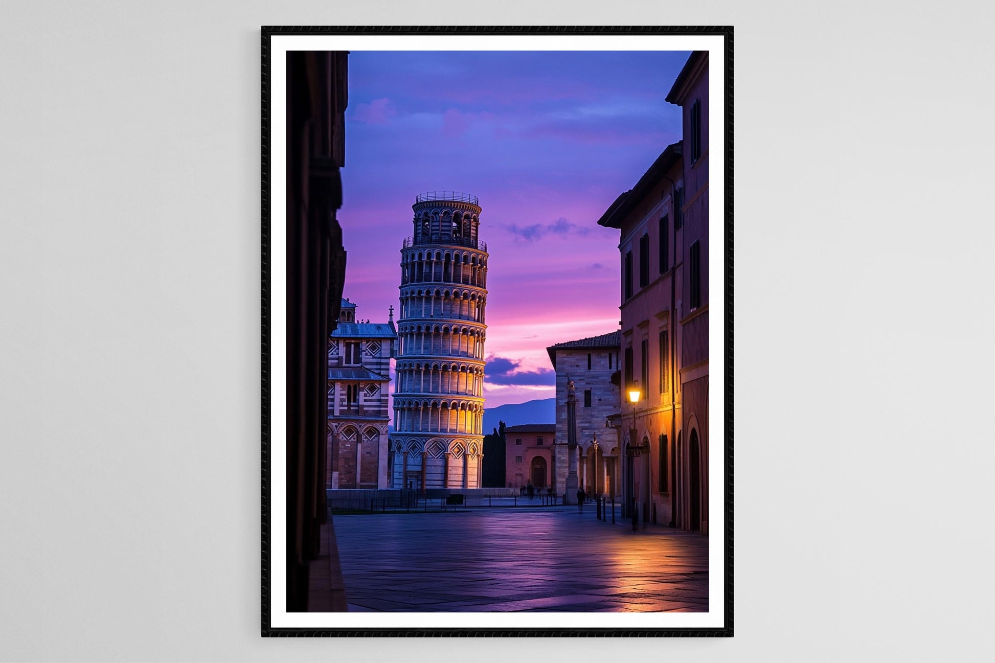 Découvrez notre affiche captivante de la Tour de Pise, où la silhouette majestueuse se dessine au crépuscule dans une palette de couleurs chaudes et douces. Cette illustration artistique évoque une atmosphère de rêve et de mystère, parfaite pour enrichir votre décoration murale. Ajoutez une touche d'élégance à votre intérieur avec ce poster mural qui célèbre l'héritage historique et la beauté intemporelle de cette destination iconique.