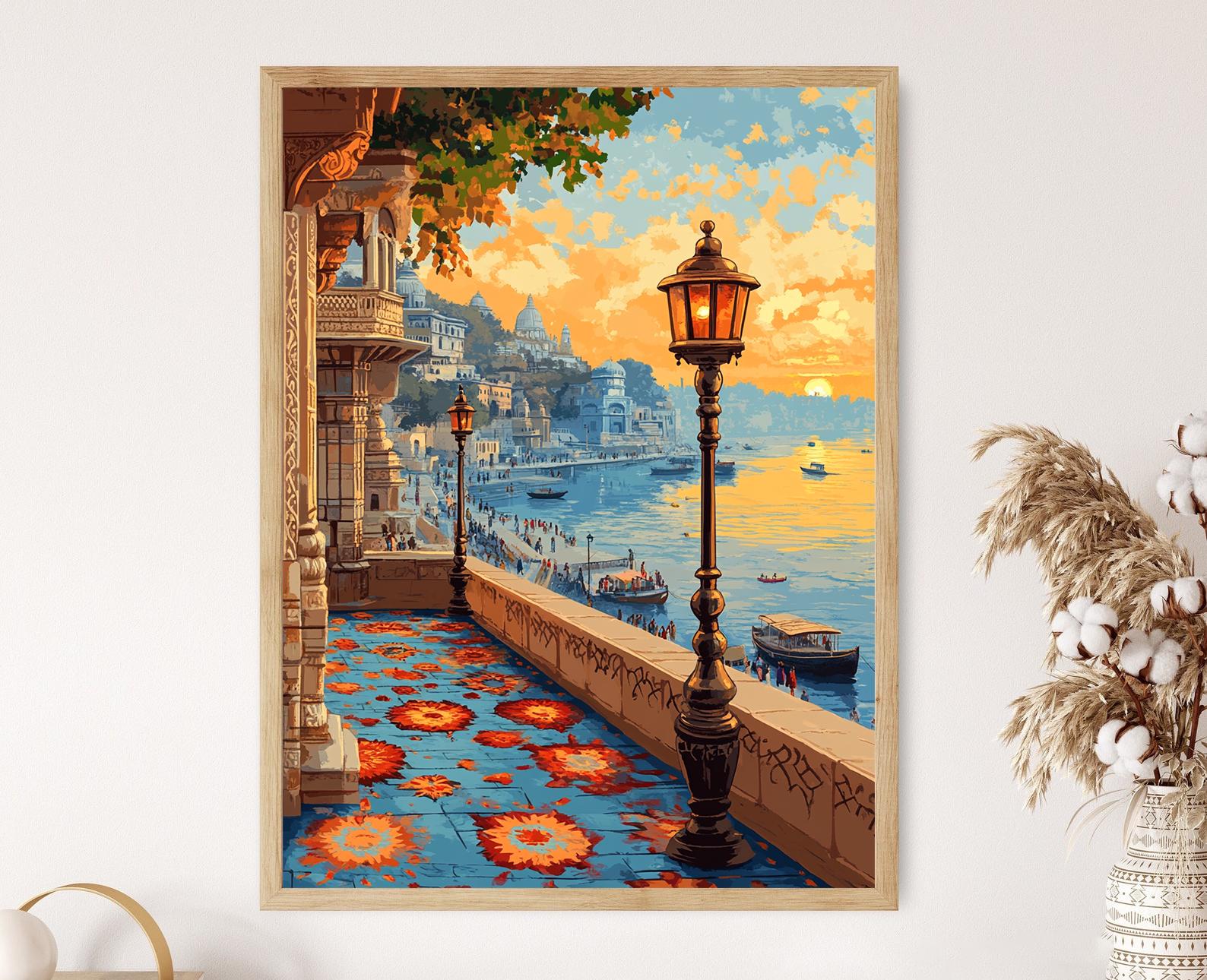 Affiche Varanasi – Poster Art Spirituelle avec Décor Rangoli