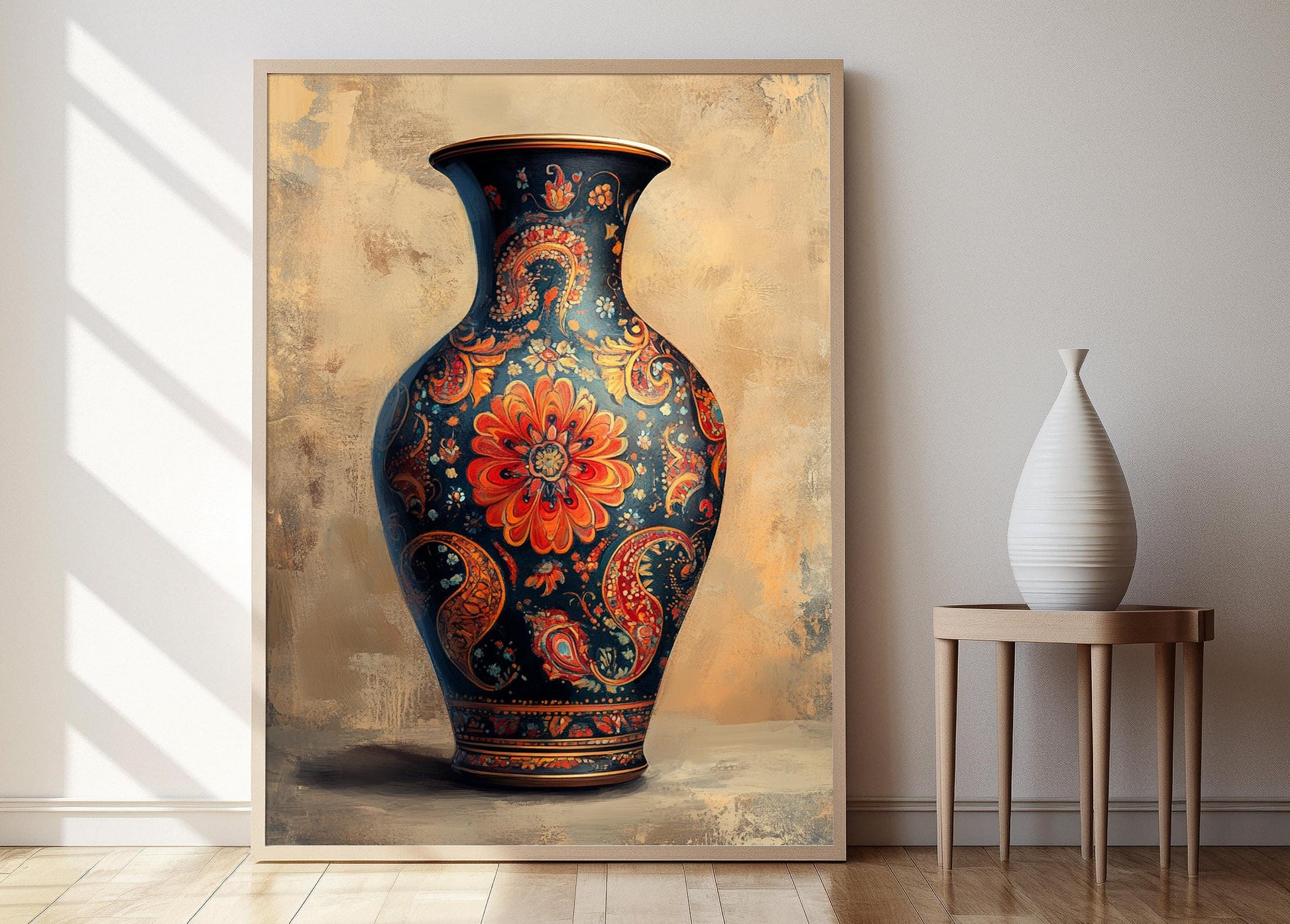 Affiche Vase Kashmiri Buta – Art Floral Indien Traditionnel