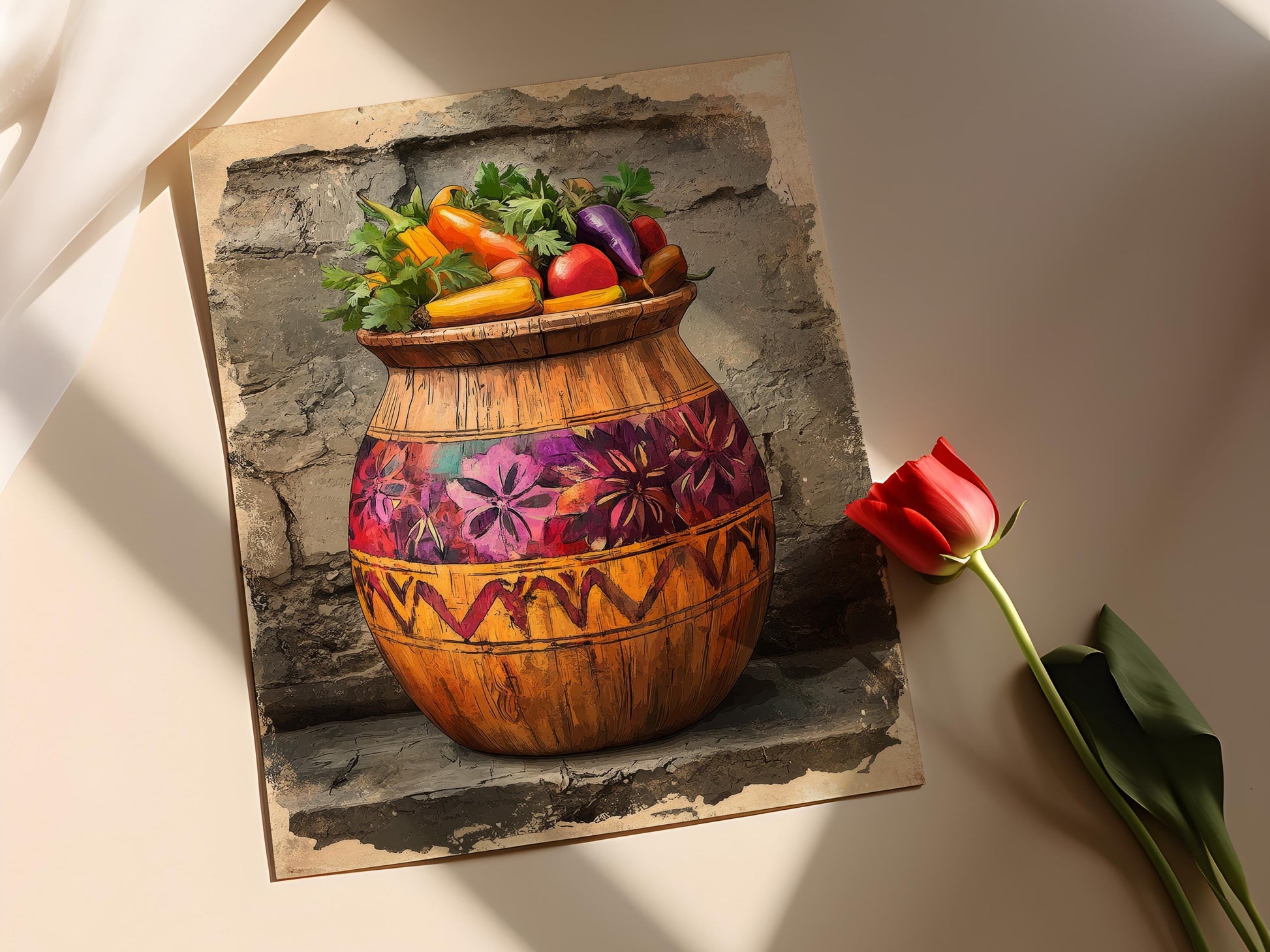 Affiche Vaudou – Imprimé de Pot en Bois Haïtien avec Légumes Marinés