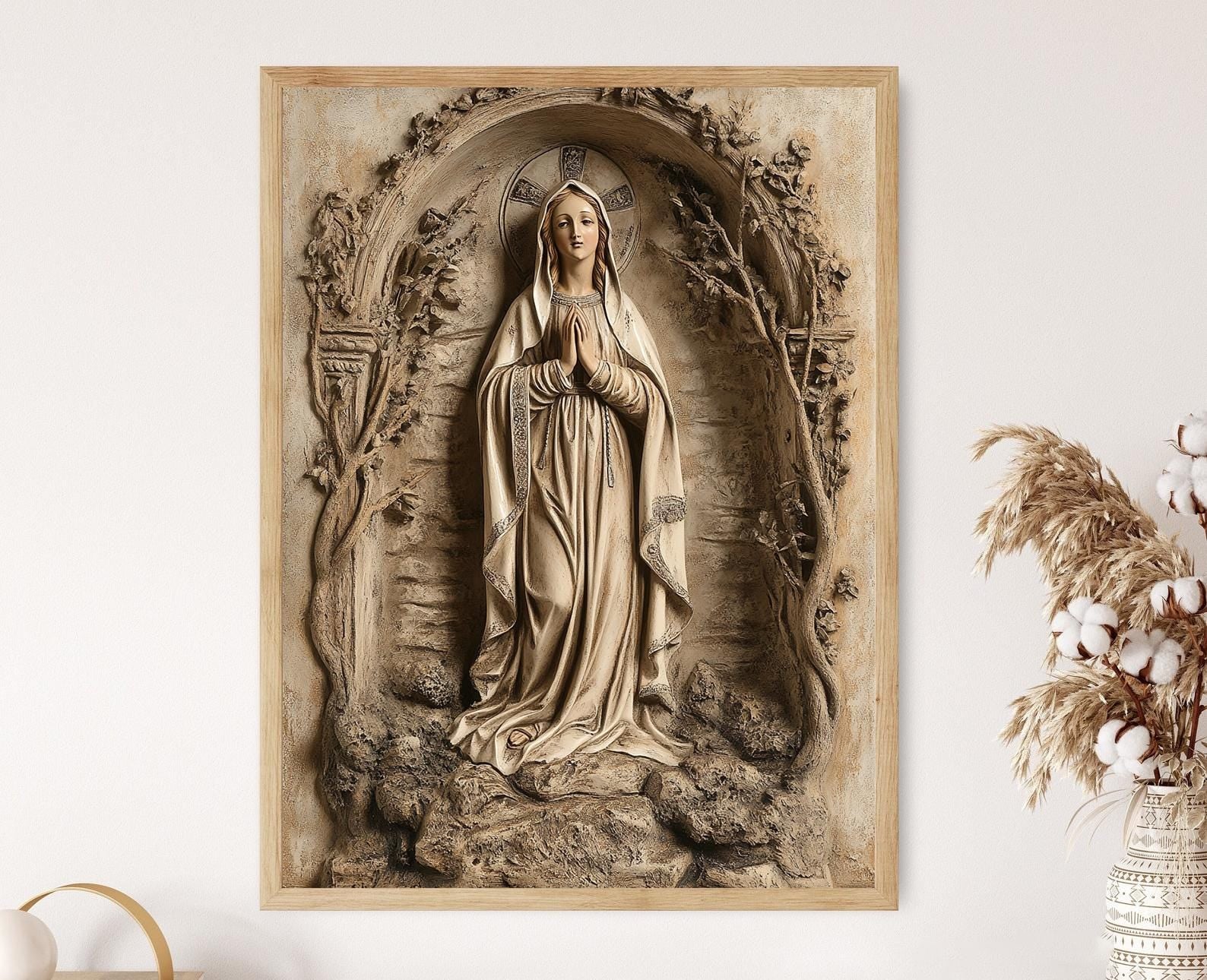 Affiche Vierge de Lourdes – Poster Art Religieuse pour Décoration Murale