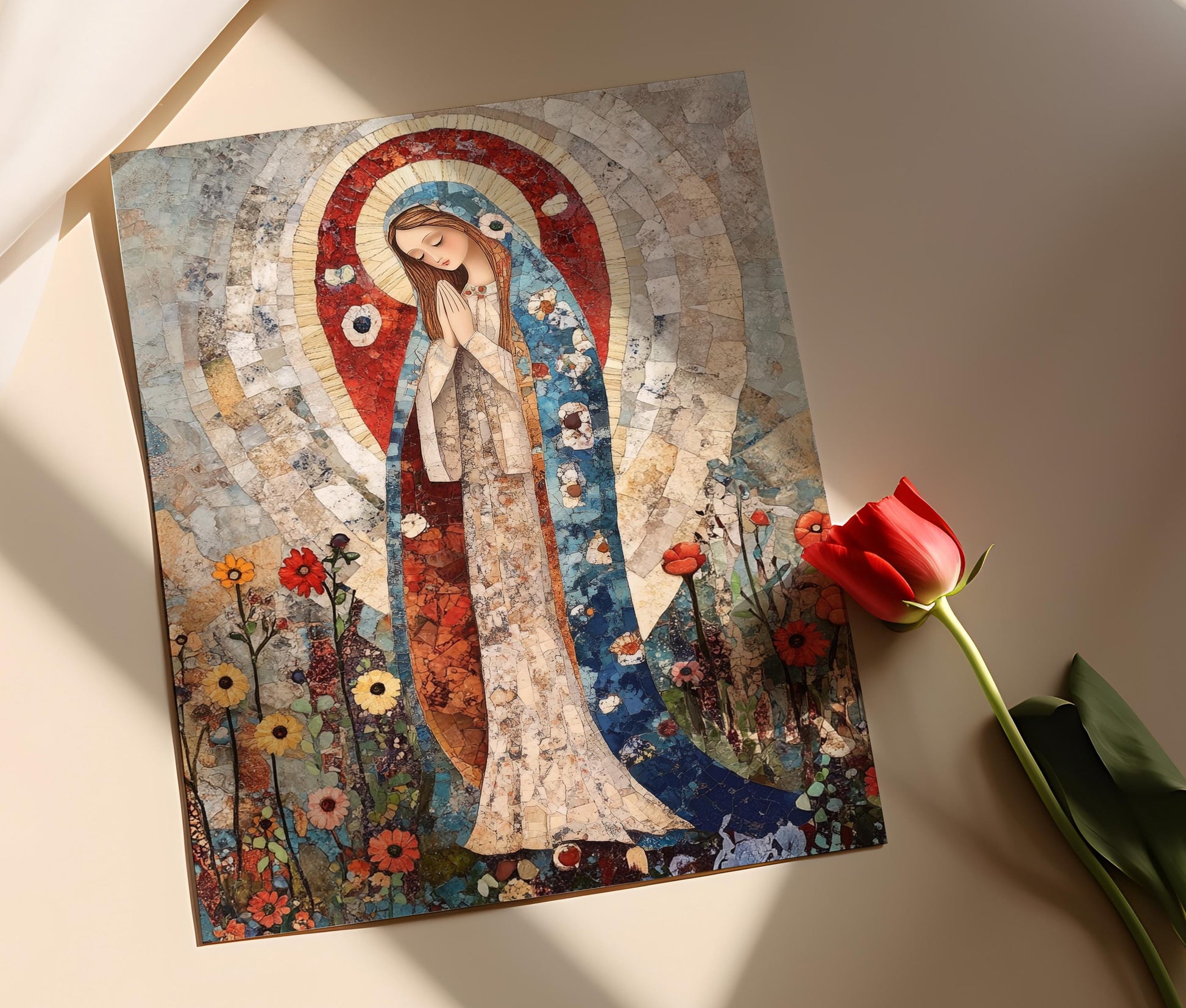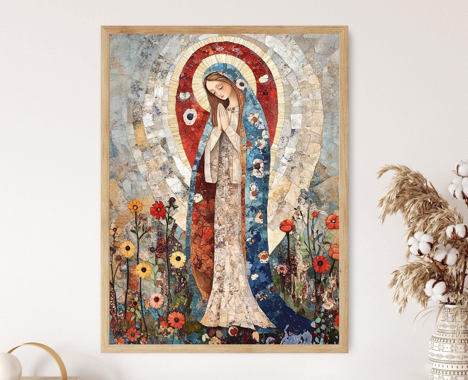 Affiche Vierge Marie Élégante – Décoration Murale Religieuse Lourdes