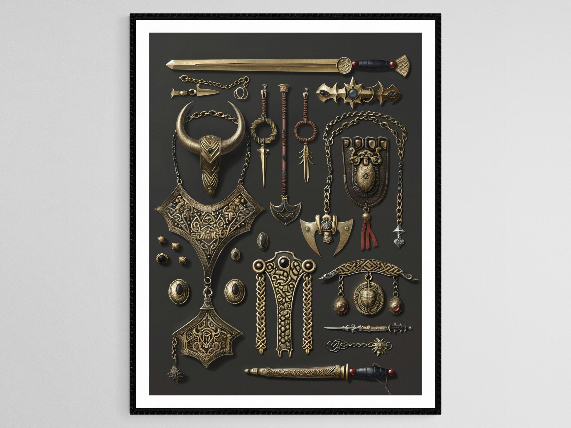 Découvrez cette magnifique affiche illustrant des bijoux vikings, une véritable ode à l'héritage norvégien. Avec ses détails raffinés et son style à la fois chargé d'histoire et d'élégance, ce poster mural apporte une atmosphère de mystère et de légende à votre décoration murale. Parfaite pour les passionnés d'art et de culture, cette illustration transformera n'importe quel espace en une galerie d'art mural inspirante.