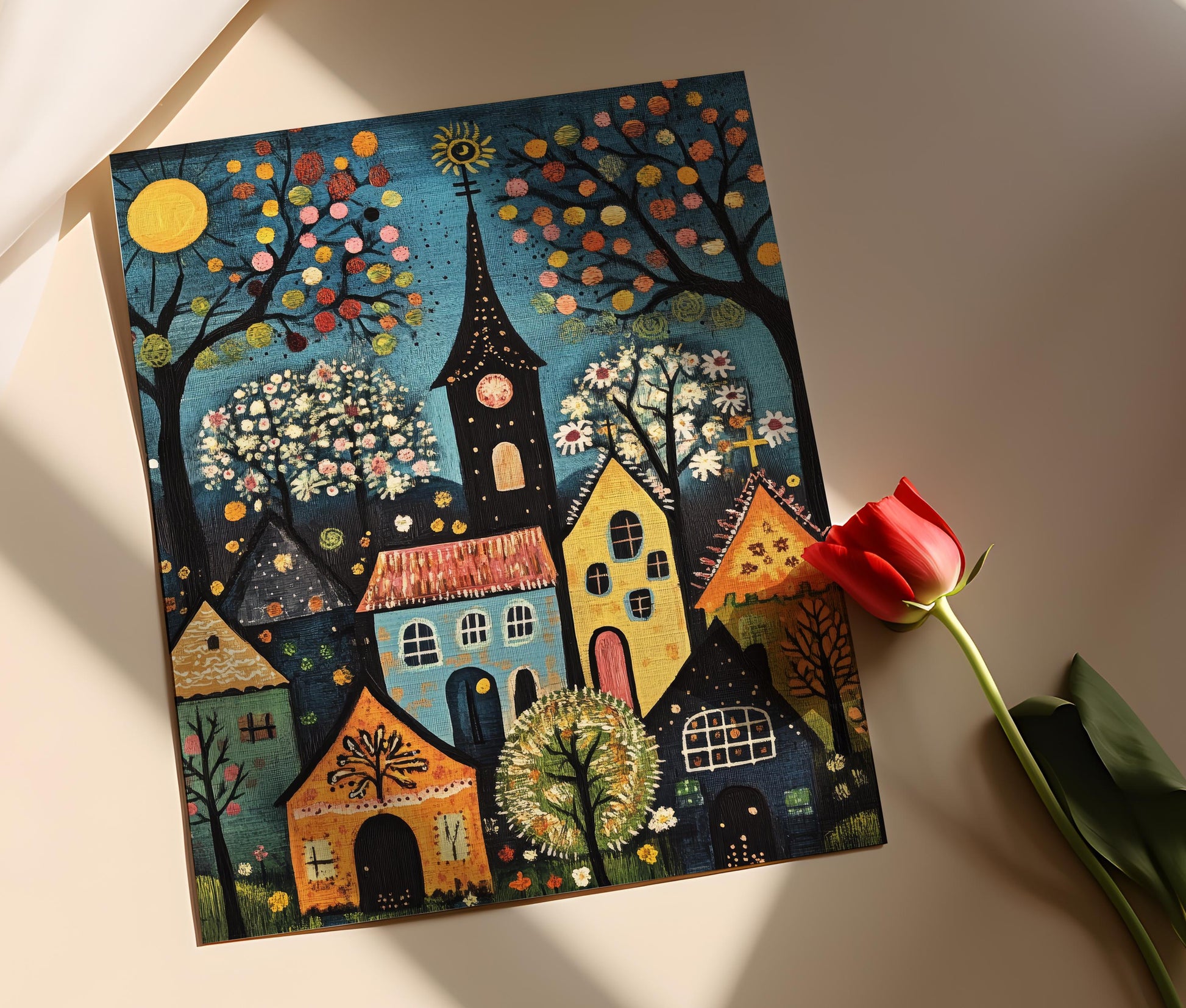 Affiche Village Allemand – Poster Art Naïf Rustique et Paysage Fantaisie
