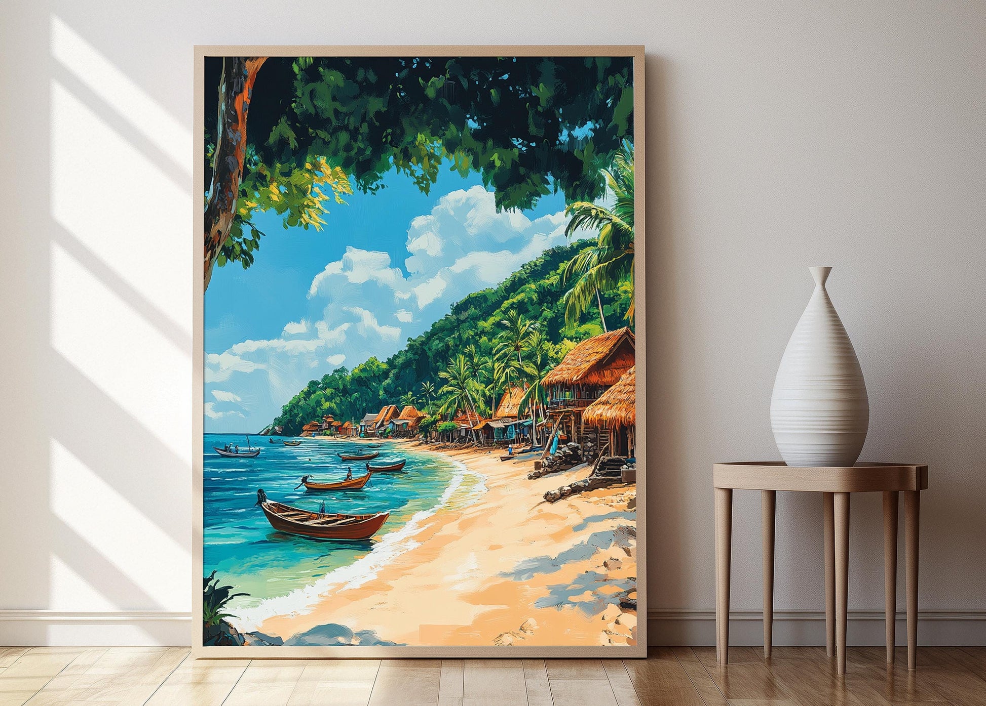 Découvrez notre affiche inspirante qui capture la sérénité de la vie insulaire à Bohol. Cette illustration vibrante met en avant des vues côtières et des petits bateaux de pêche, évoquant un sentiment de paix et d'harmonie. Parfaite pour votre décoration murale, cet art mural apporte une touche tropicale et célèbre les riches textures et l'esprit dynamique des Philippines.