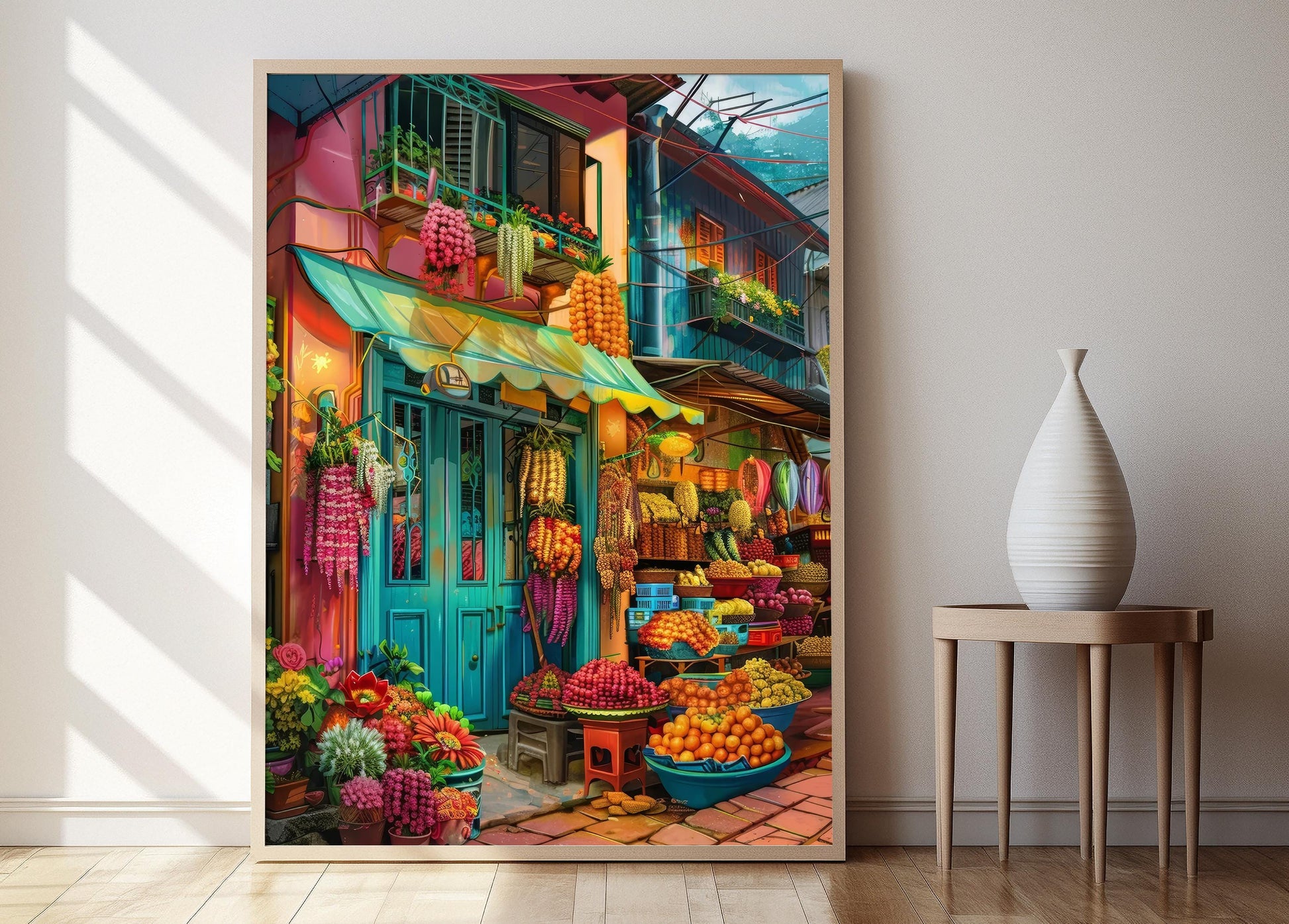 - Cadres en option : Noir, Blanc, Bois clair, Bois foncé (option prêt à accrocher).