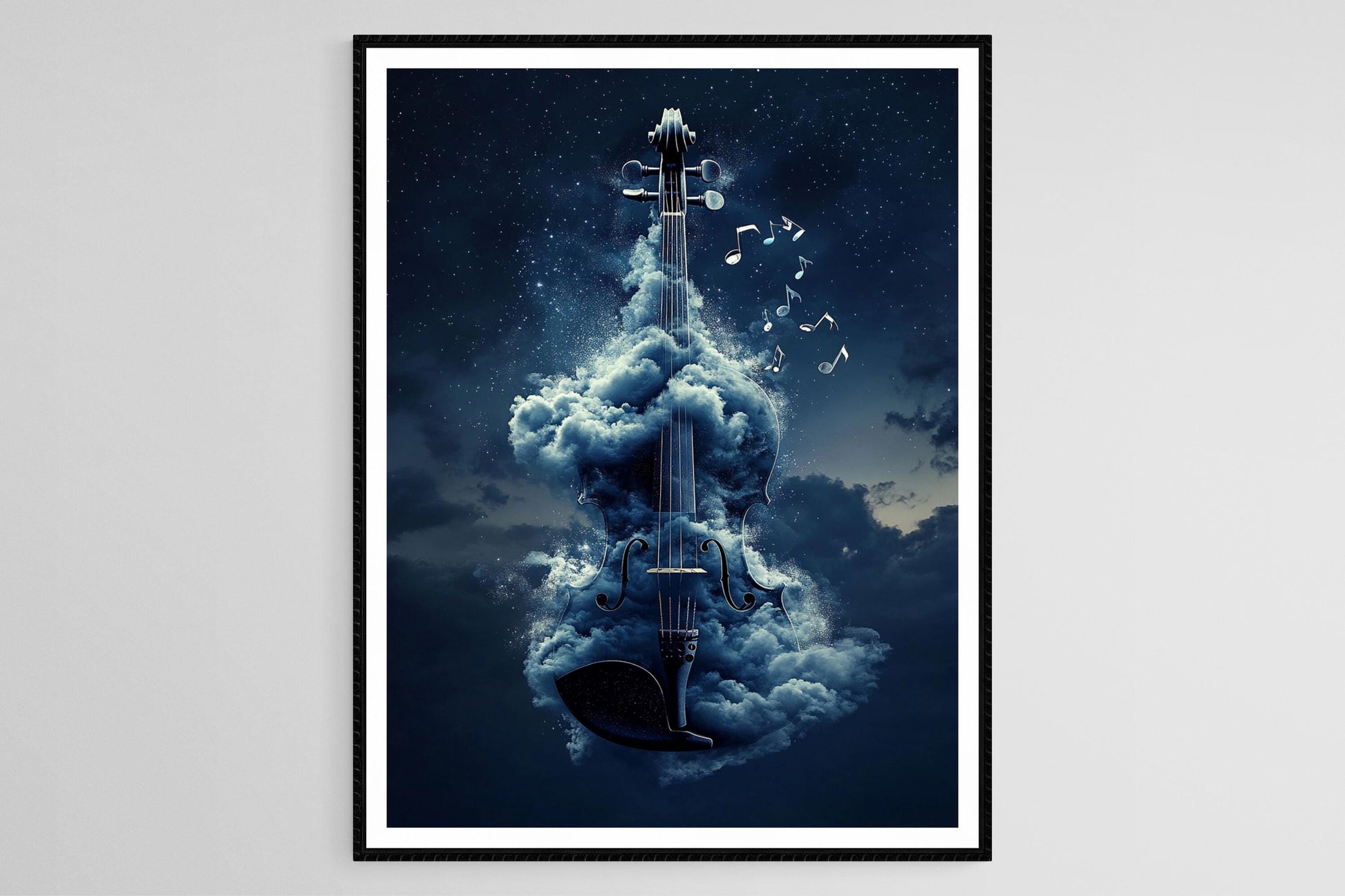 Affiche Violon Fantastique – Poster Ciel Crépusculaire et Poussière Musicale