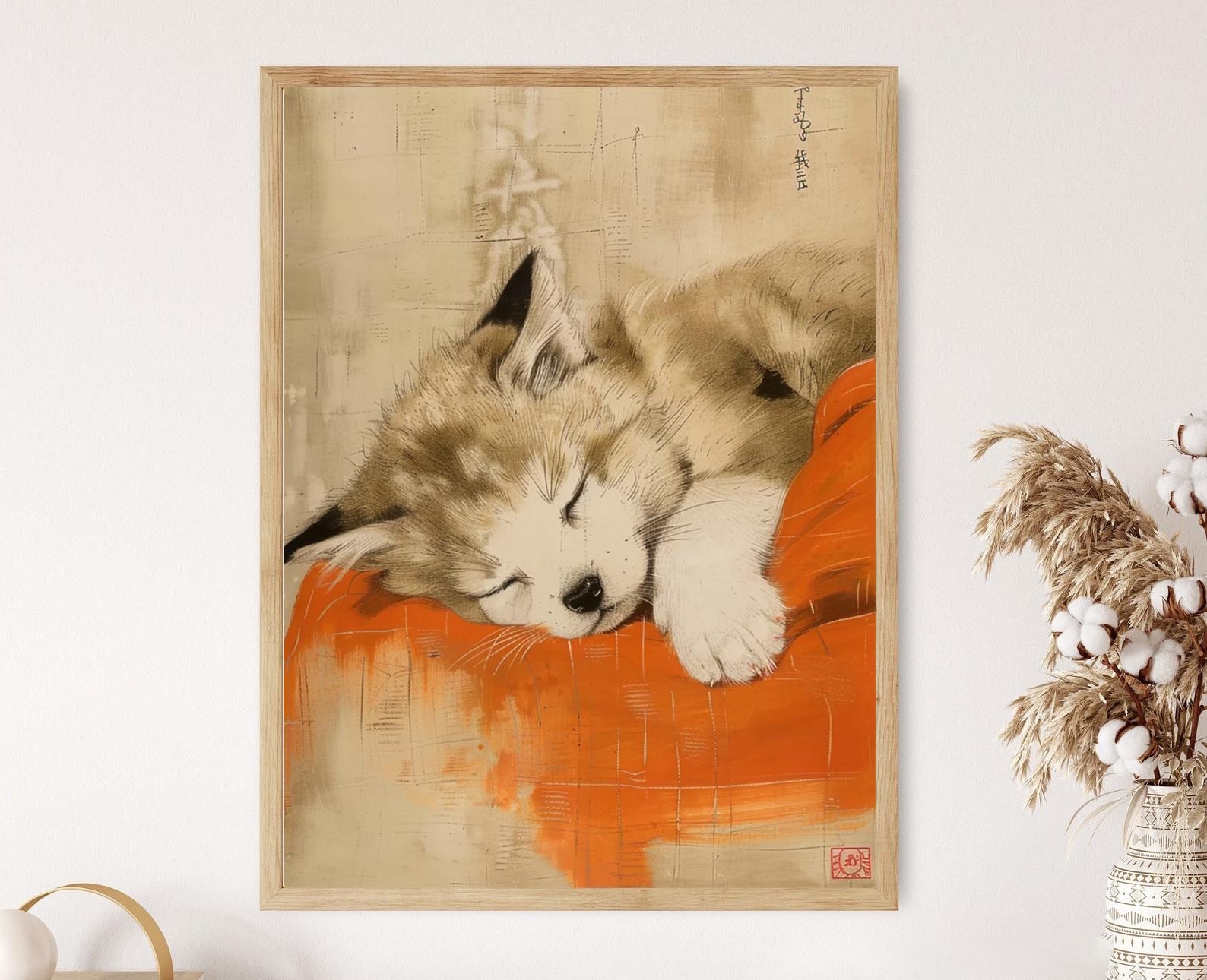 Découvrez l'affiche captivante "Wabi-Sabi Sleeping Puppy", une illustration qui évoque la douceur et la sérénité du style wabi-sabi. Cette œuvre d'art mural, riche en nuances douces, célèbre la beauté de l'imperfection, apportant une ambiance chaleureuse et authentique à votre décoration murale. Laissez-vous emporter par l'émotion apaisante de cette affiche qui invite à la contemplation et à la paix intérieure.